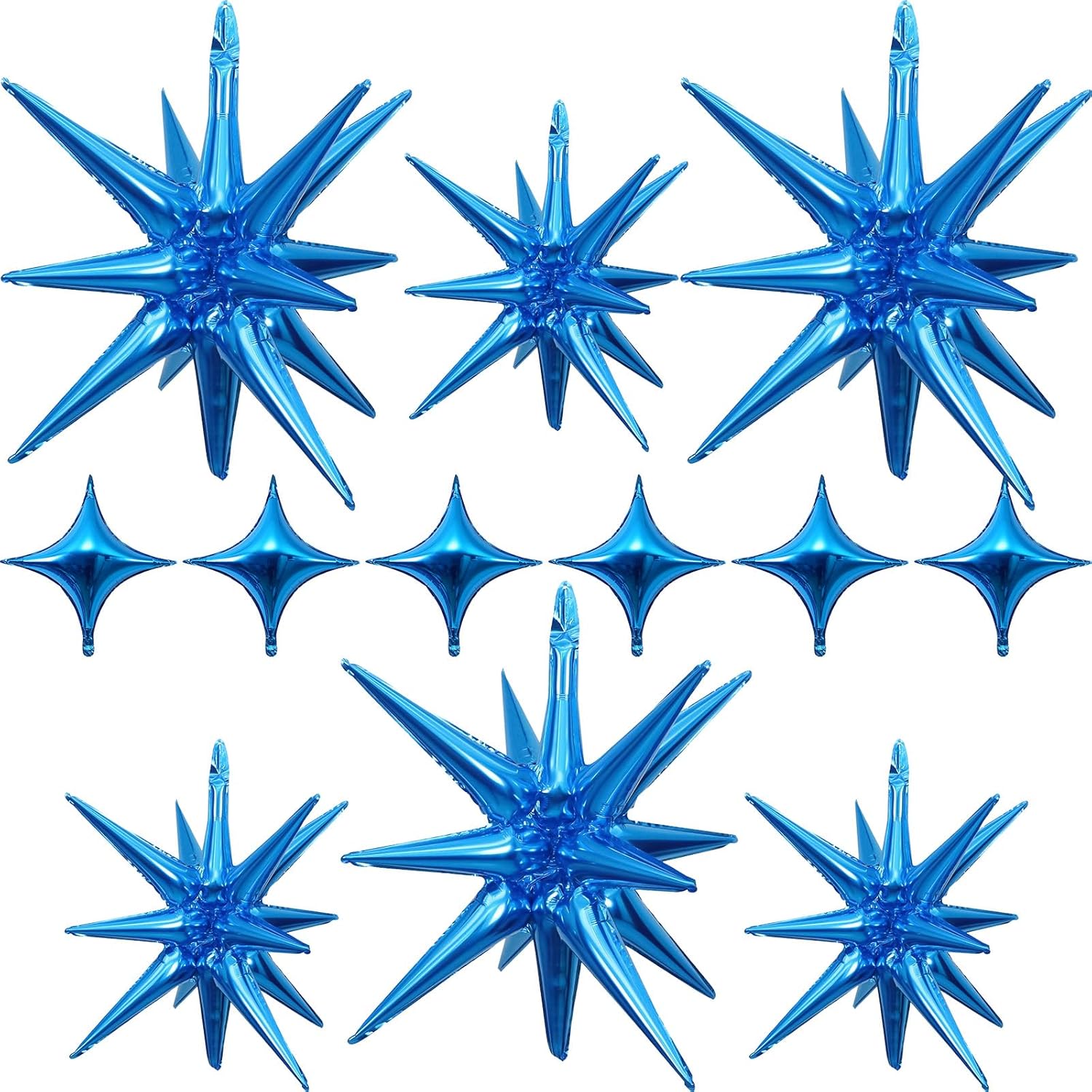 Blue Star Balloons 12pcs, 27/22 Inch Foil Star Explosion Balloons, Large Spike Mylar Cone Balloon, Fireworks Shape Balloon Party Decor for Men Boys Birthday Space Theme Backdrop