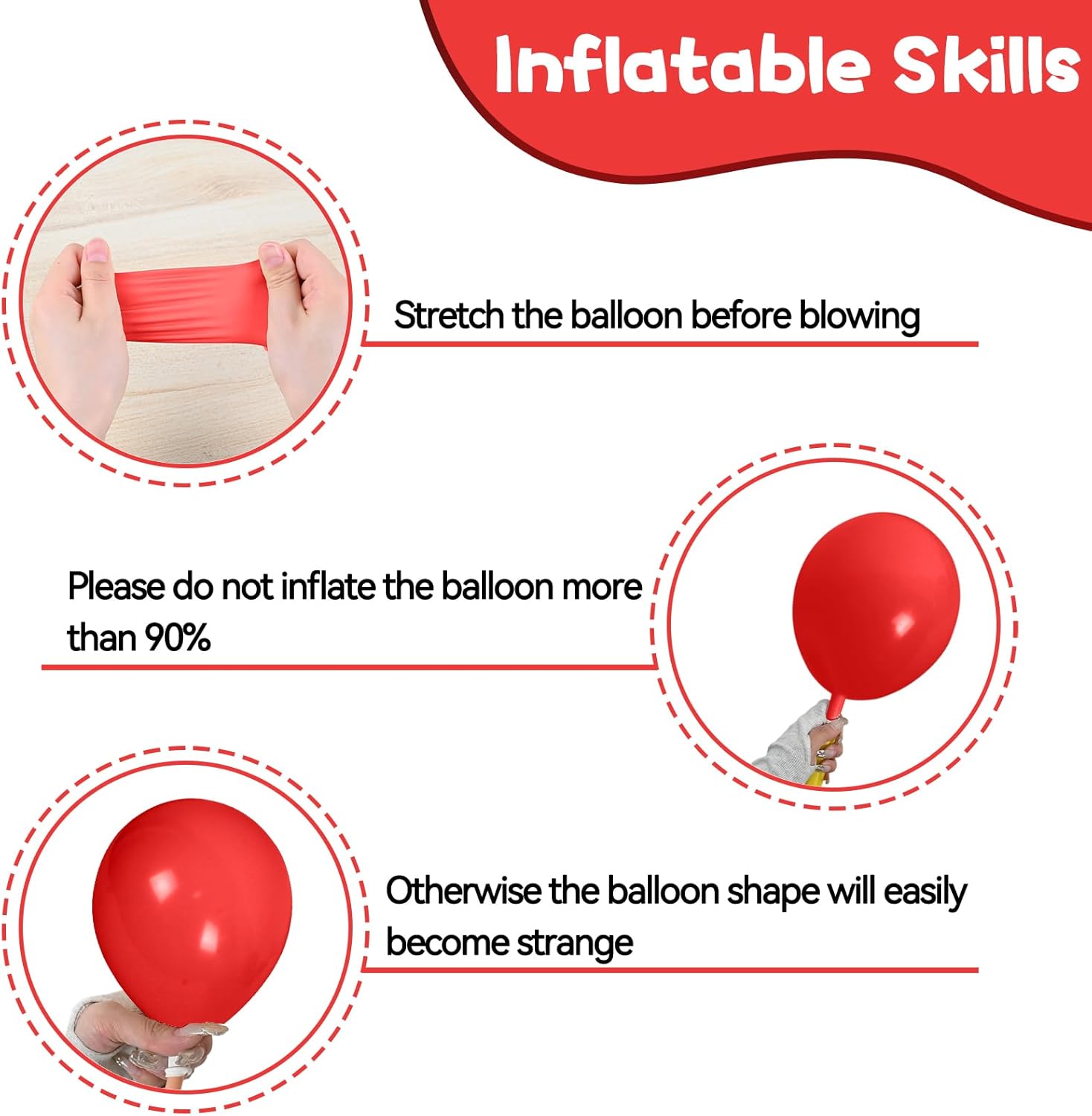 - Note: When you receive these dark balloons, the color before inflation usually looks black, and the color after inflation is exactly what you want. Please do not over-inflate balloons and avoid sunburn, overheating, sharp objects and excessive friction