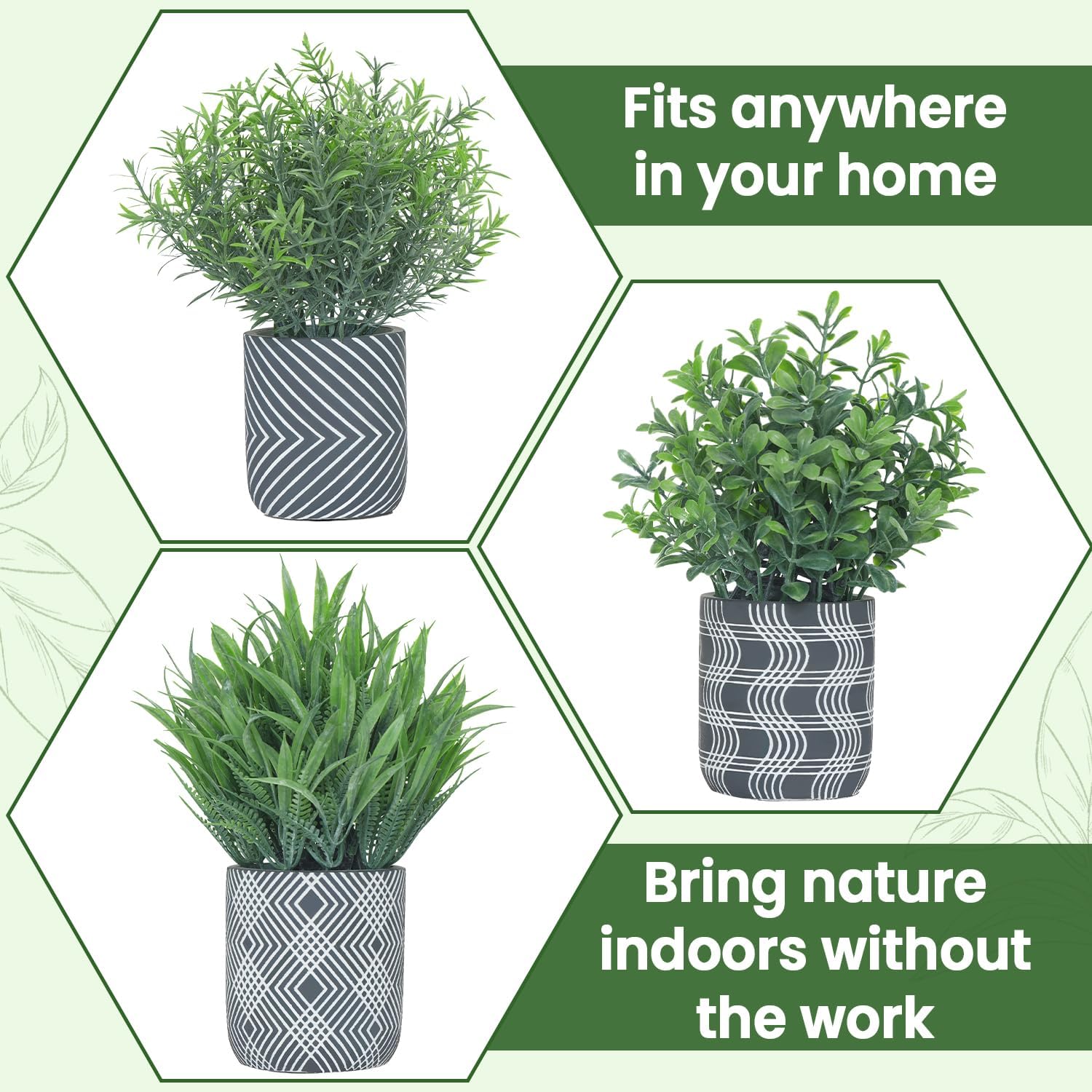 - Versatile Home & Office Decor: Compact and lightweight, these small faux plants are ideal for brightening up your windowsill, desk, shelf, kitchen, bathroom, or office. Whether placed individually or as a set, they instantly elevate any space with a touch of greenery and a modern farmhouse aesthetic