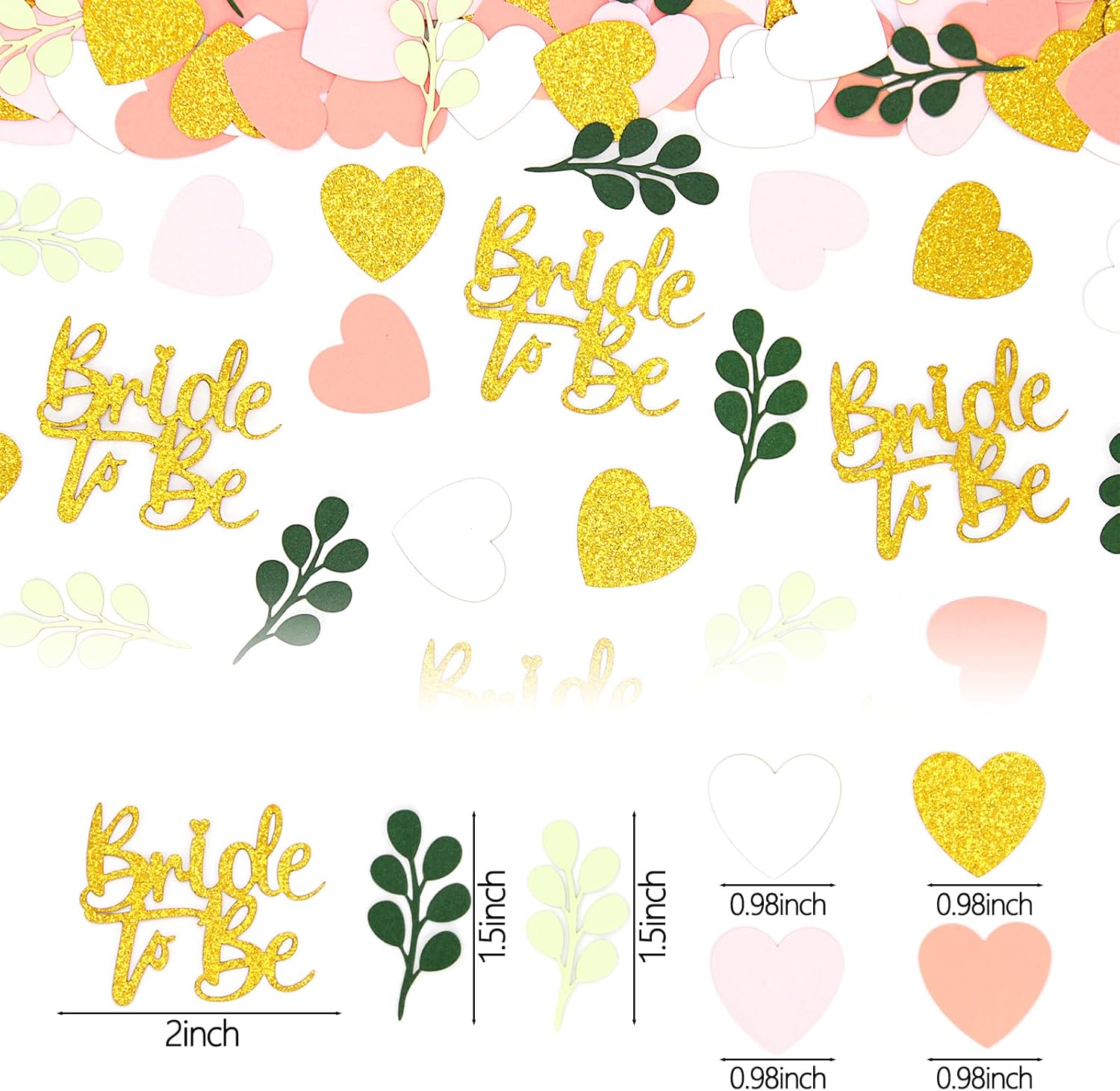 - 5.Proper Size and Premium Material.The heart confetti width 0.98inch,the sage leaves 1.5inch width,the bride to be letter 2inch width,looks perfect with premium fresh color papercard,adding a warm and energetic sense to your party table decorations.