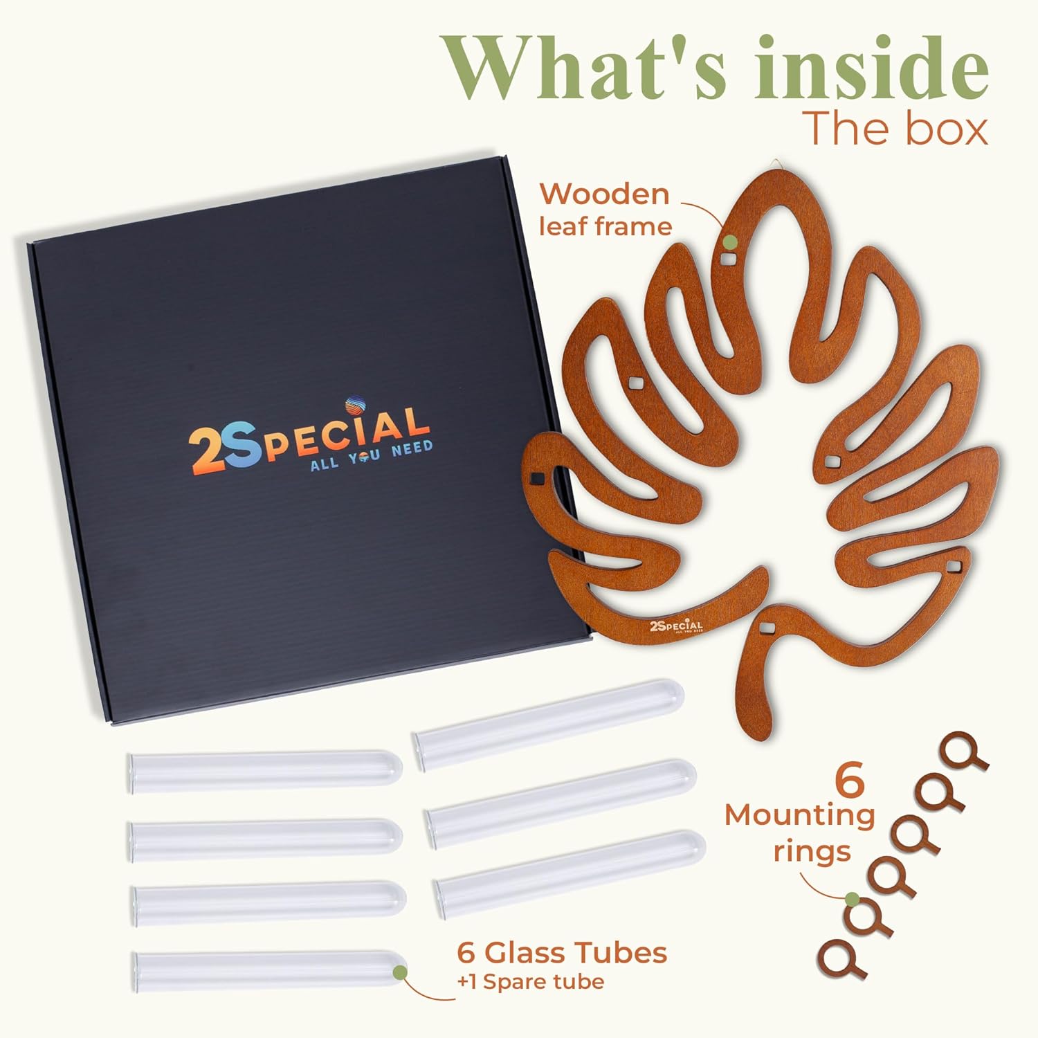 2Special Propagation Stations | Hanging Propagation Station and Wall Planters for Indoor Plants | Wooden Wall Vase, 6+1 Glass Propagation Vases for Plants | Leaf Shape Plant Propagation Station