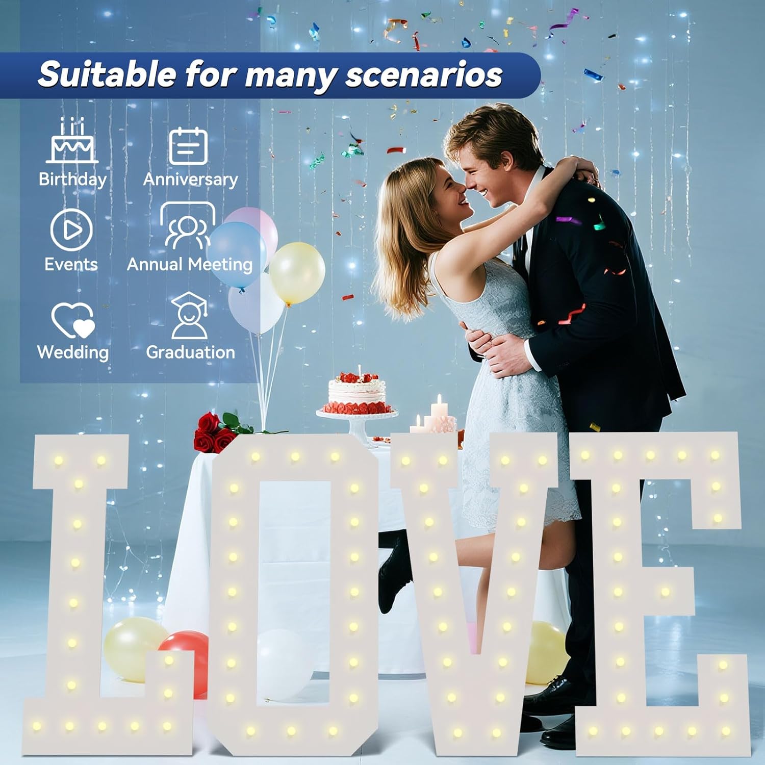 - 【4FT Marquee Light Up Letters】: 4 FT White pre-cut foam mosaic letter frame with warm white LED lights is an eye catching centerpiece for birthday party, wedding, baby shower and Christmas. Light up your party and make your indoor celebration more special
