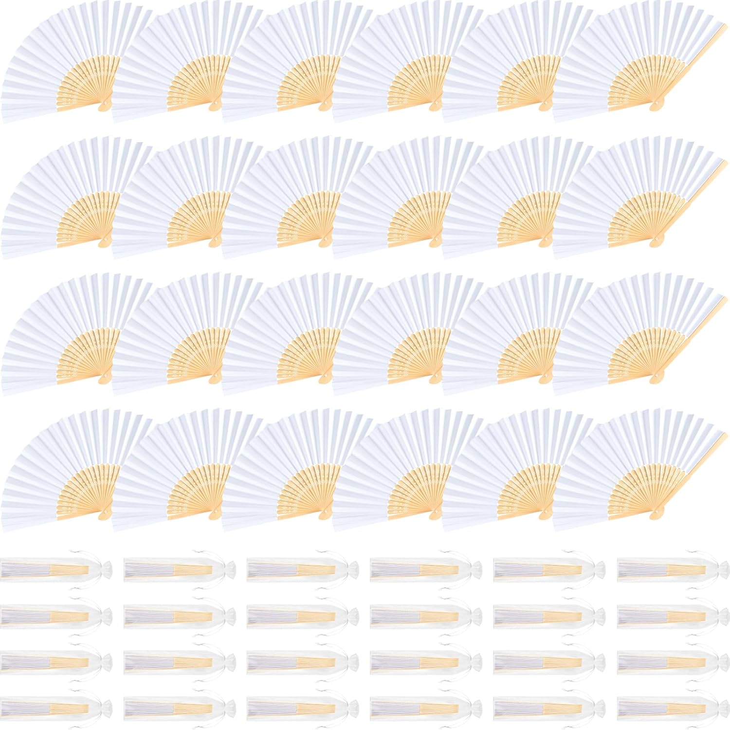 NEBURORA 24Pcs White Handheld Paper Fans 8.3 Inch Hand Held Bamboo Fans Foldable for Wedding Decoration Outdoor Party Favors DIY Decoration Dancing Photography Props