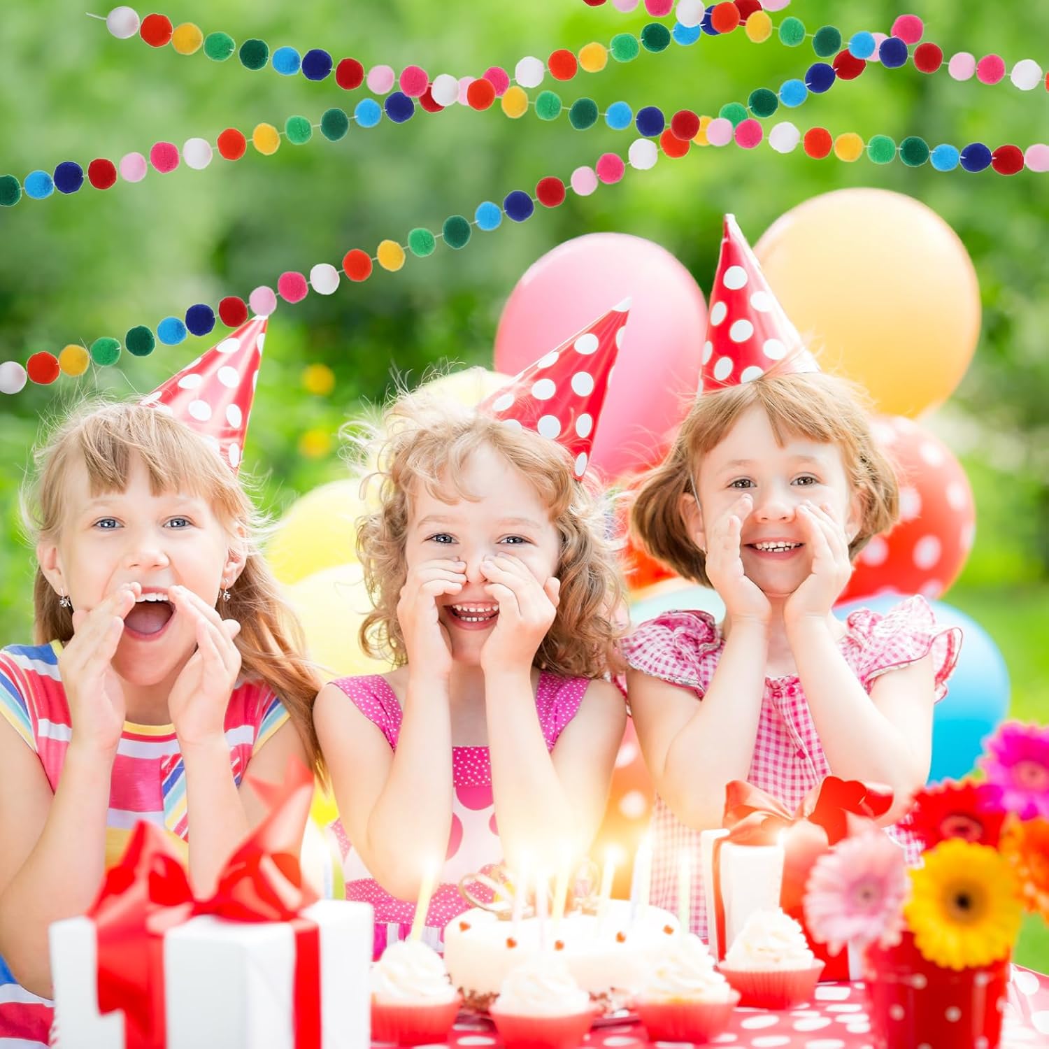 - Versatile Use: Perfect for pom pom decorations, this colorful garland enhances birthday parties, weddings, baby showers, Christmas, and more. Also great as colorful decorations for living rooms, bedrooms, or classrooms.