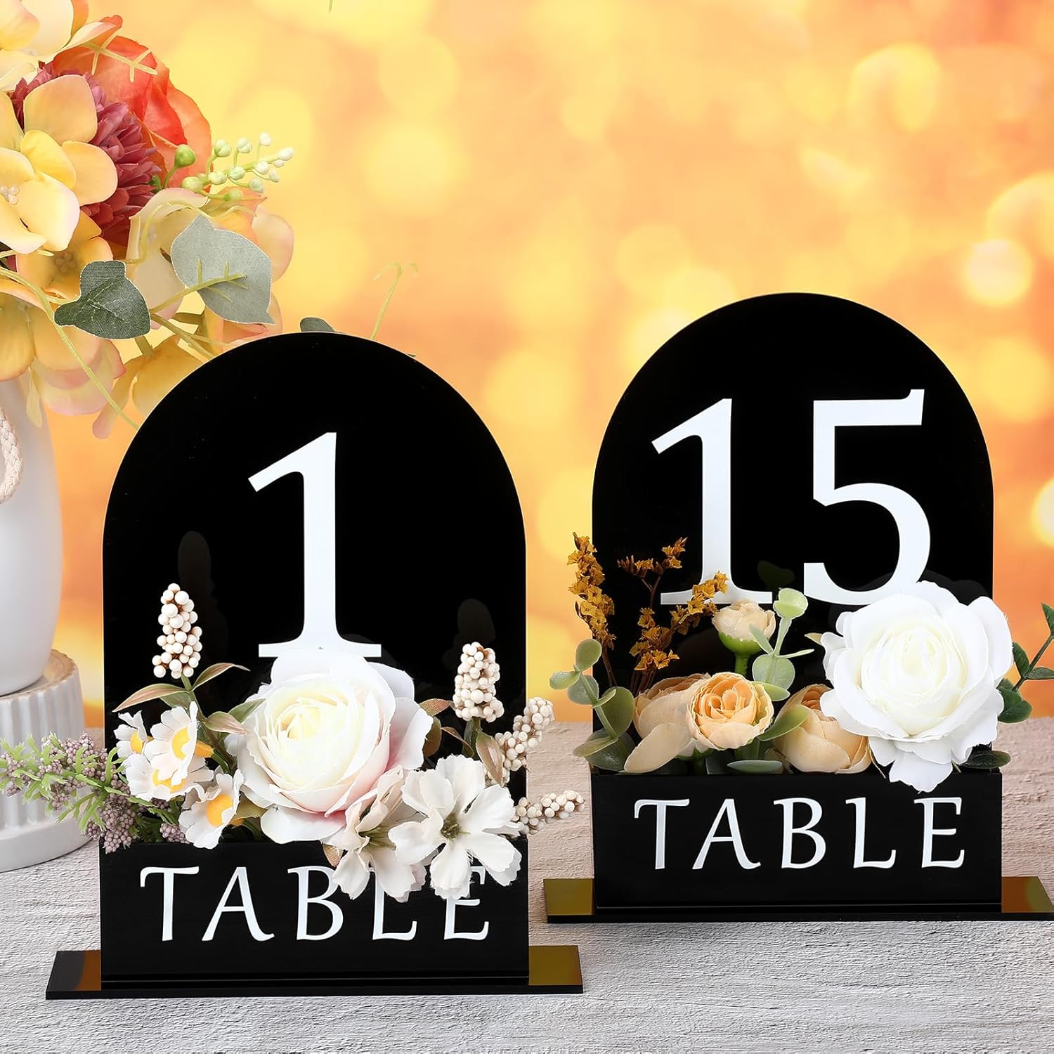 - Unique Design: these table numbers for wedding are designed with big, beautiful White raised font design, giving your table numbers a three-dimensional look; The wedding decor is uniquely designed with a flower trough on the front, allowing you to place flowers to enhance the overall aesthetic; So everyone can spot their table, even from far away