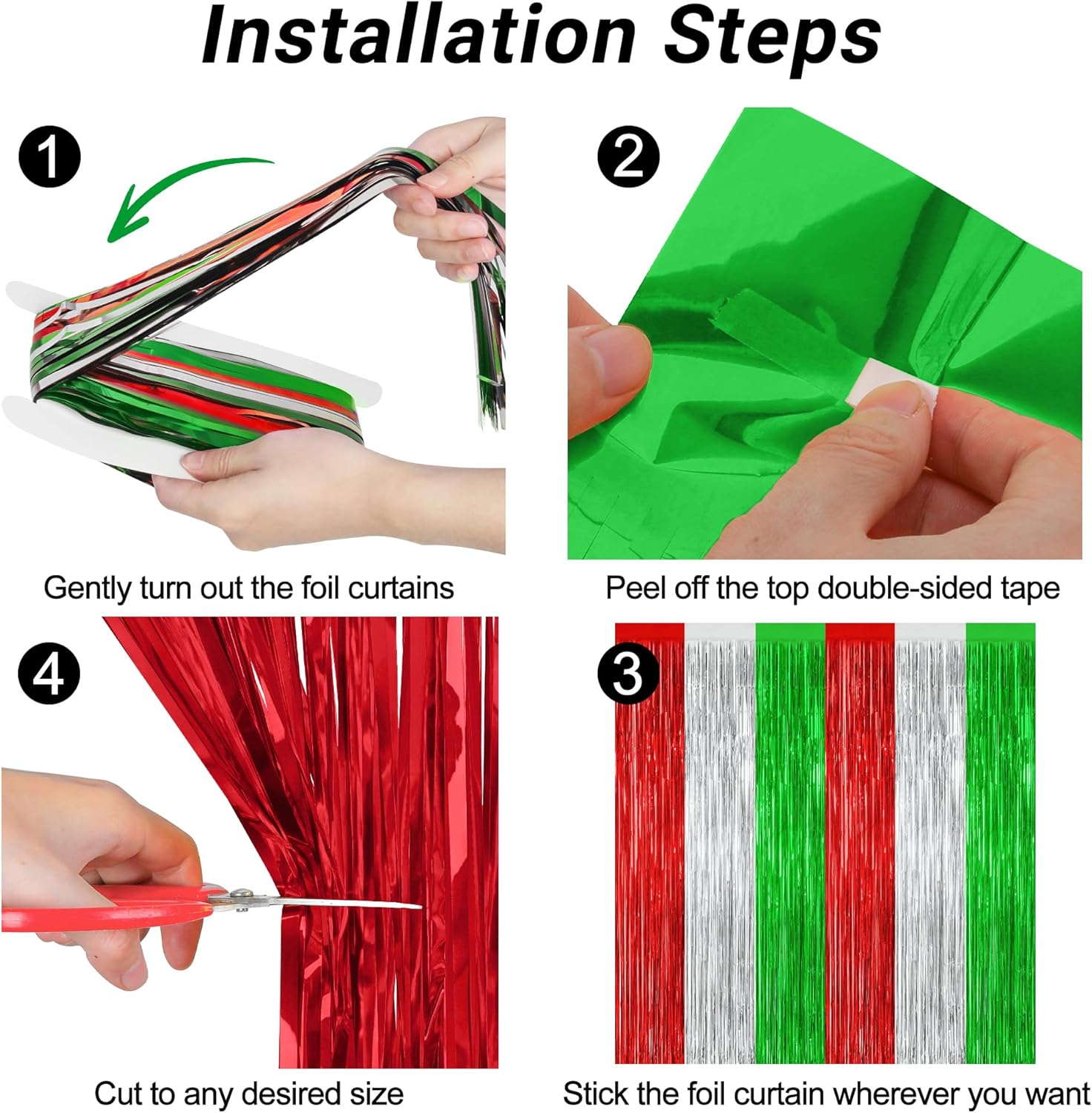 - Widely Use: These Christmas foil curtains are perfect for Christmas party supplies, hanging Christmas decor, Christmas indoor decor, also suitable for other parties, celebrations.