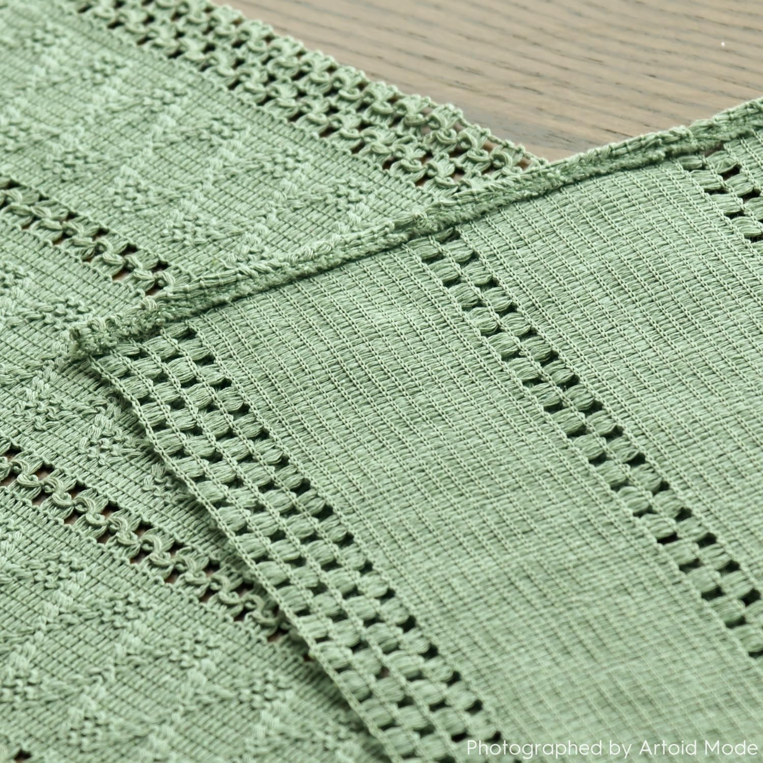Artoid Mode Light Green Farmhouse Woven Rustic Hollow Table Runner, Seasonal Holiday Hollow Kitchen Dining Table Decoration for Home Party Decor 12x108 Inch