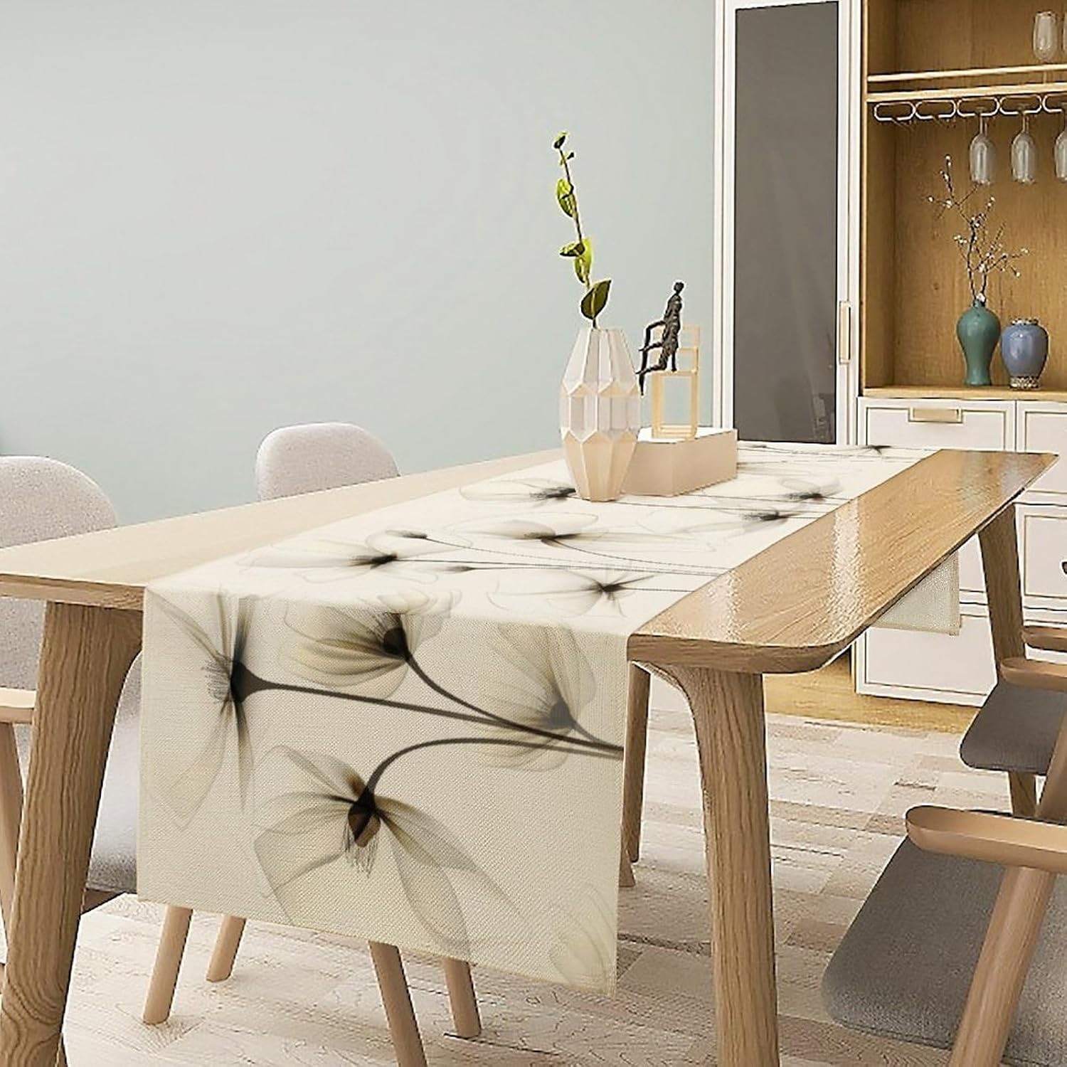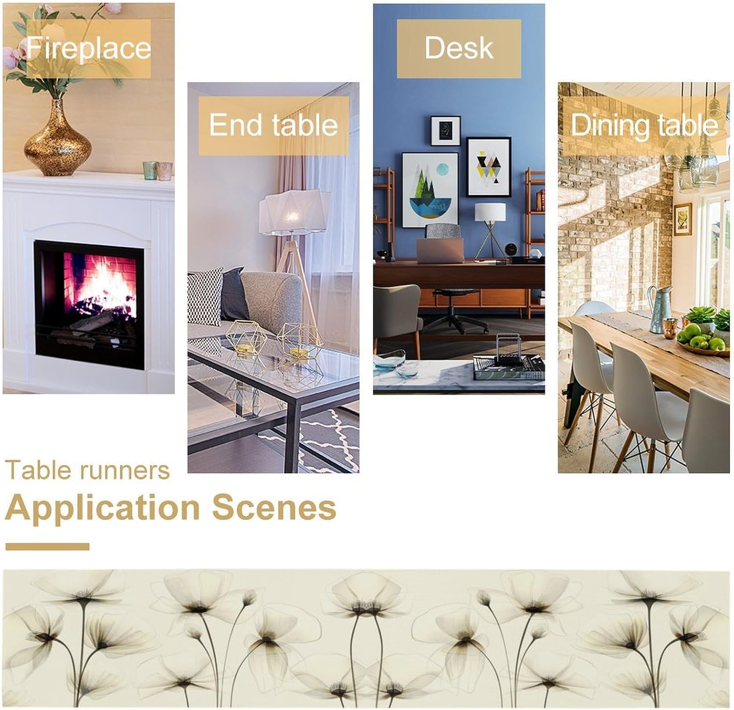 Abstract Floral Table Runner, Watercolor Transparent Beige Poppy Flowers Print Kitchen Dinning Table Runner for Indoor Outdoor Home Wedding Party Holiday, 13x60 Inch