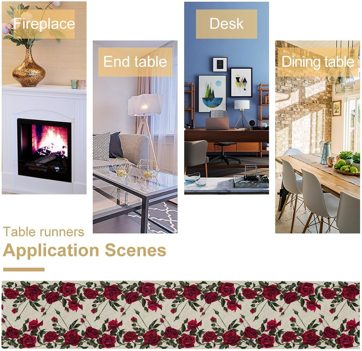 Rose Table Runner, Retro Red Rose Flowers Green Leaves Valentine's Day Kitchen Dinning Table Runner for Indoor Outdoor Home Wedding Party Holiday, 13x90 Inch