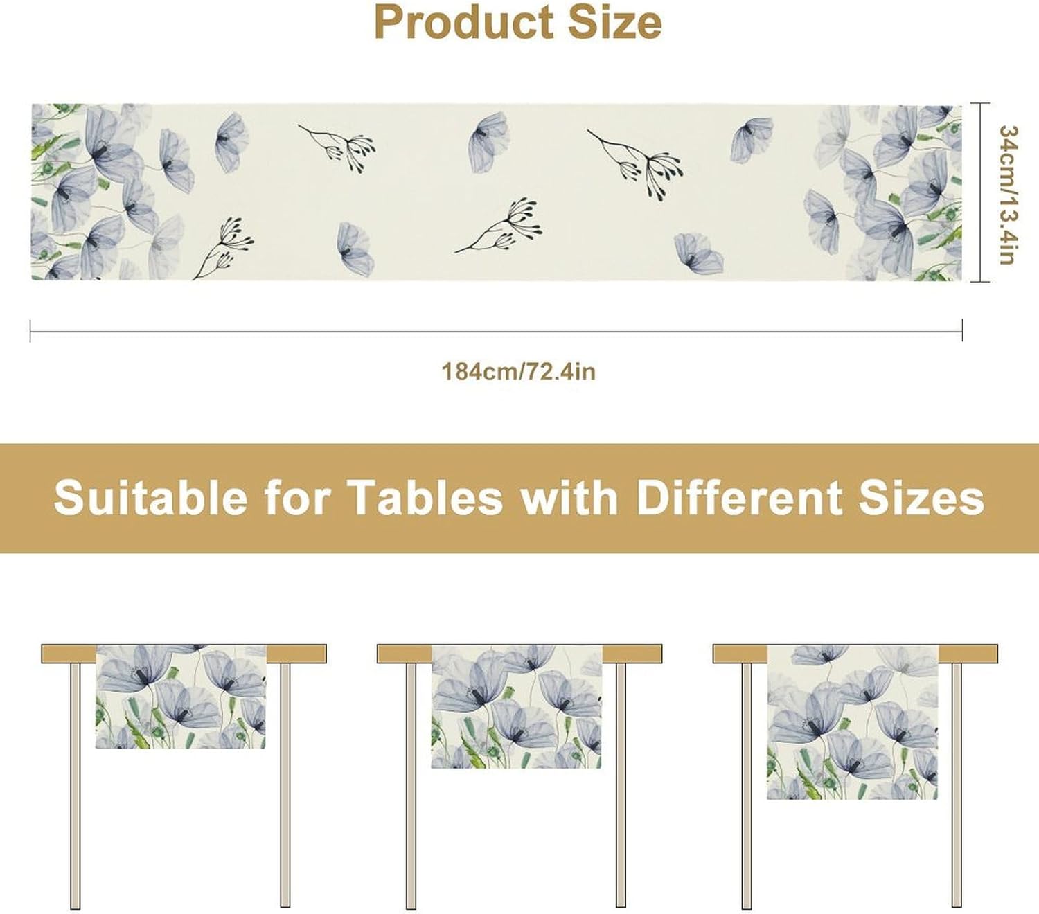 - Package:Each package 1 Table Runner, measures Length: 120 inch, Width: 13 inch.