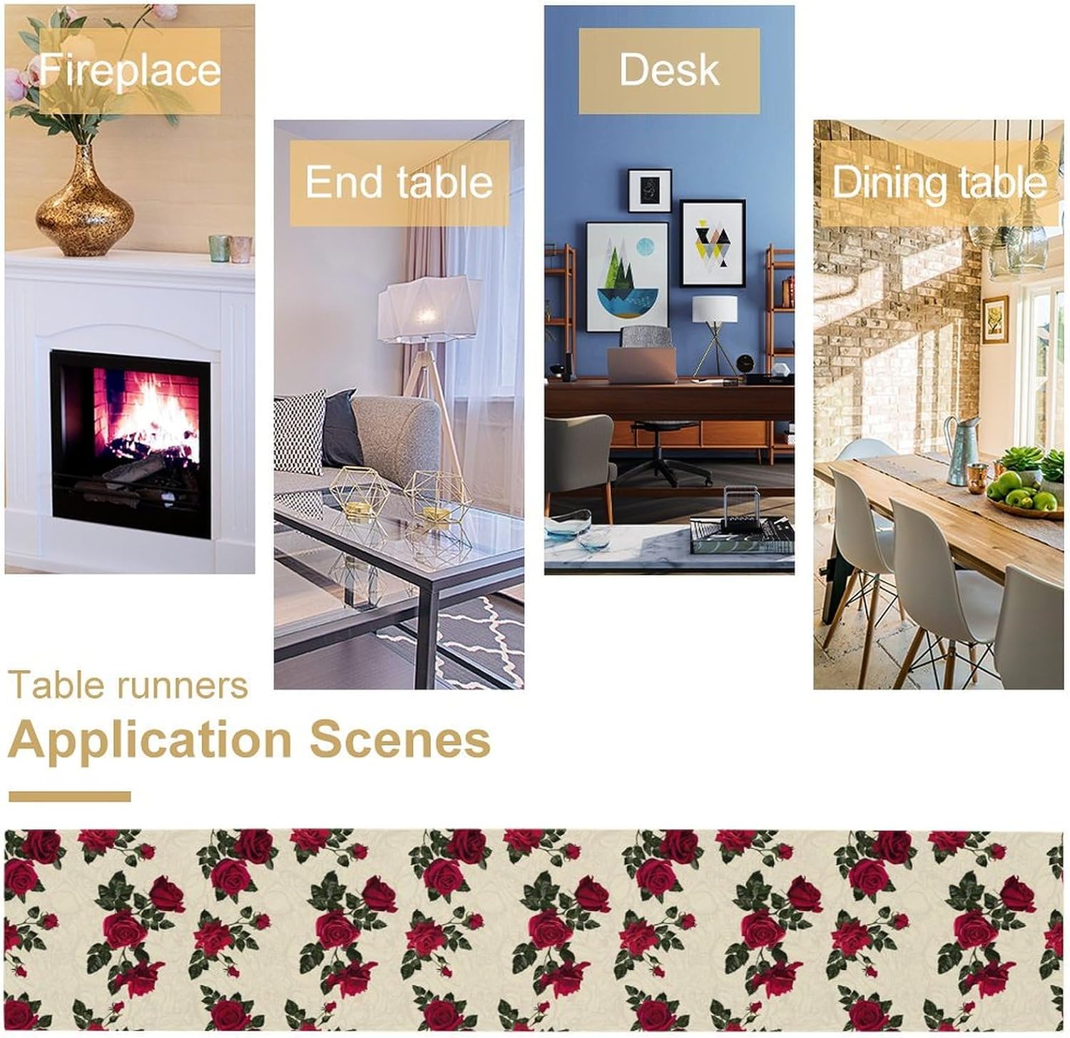 Vintage Rose Table Runner, Red Flowers Green Leaves Valentine's Day Table Runner for Kitchen Dinning Table Runner Decor Home Wedding Party Holiday, 13x36 Inch