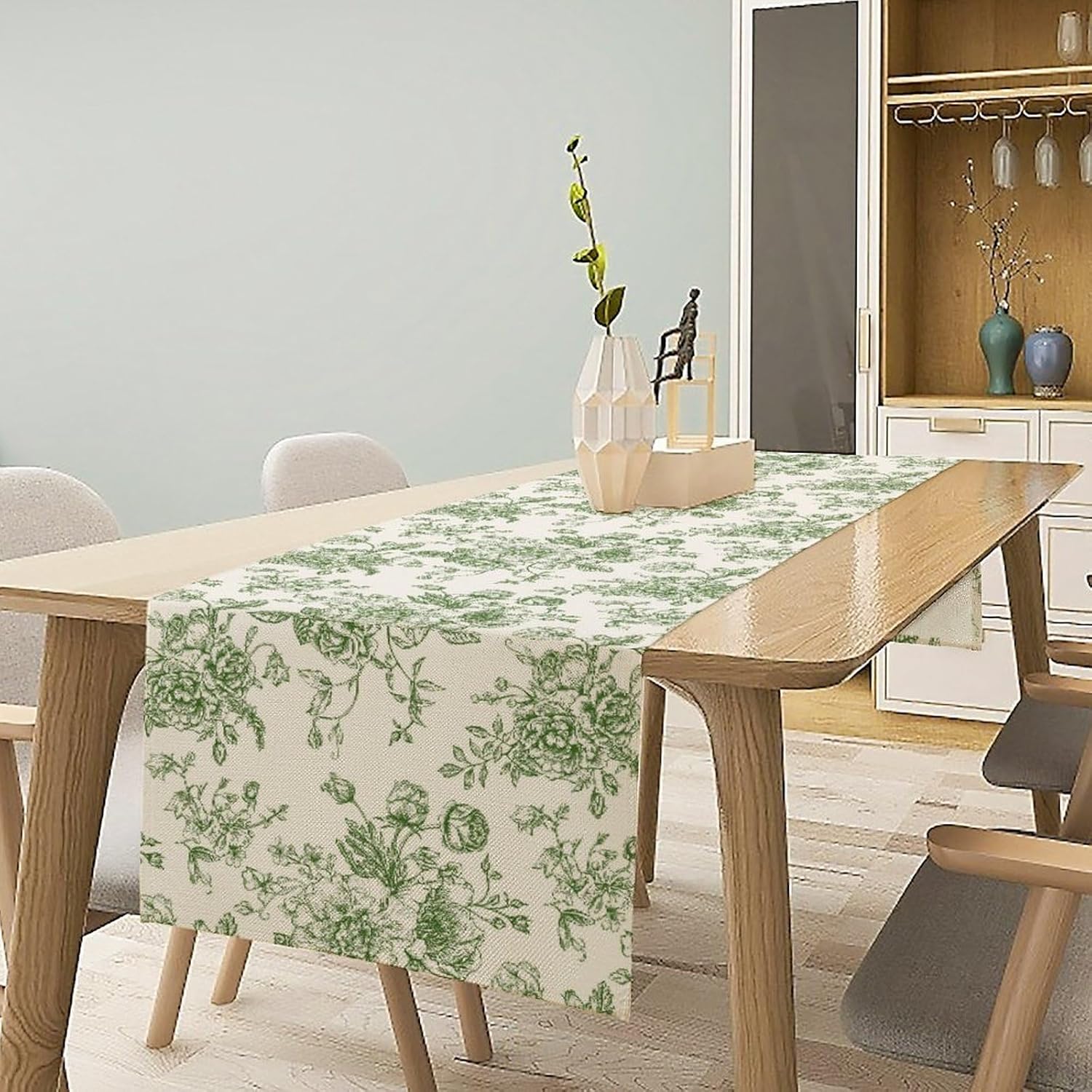 Vintage Flower Table Runner, Wildfloral Green Floral Sketch Pattern Print Table Runner for Kitchen Dinning Table Runner Decor Home Wedding Party Holiday, 13x108 Inch