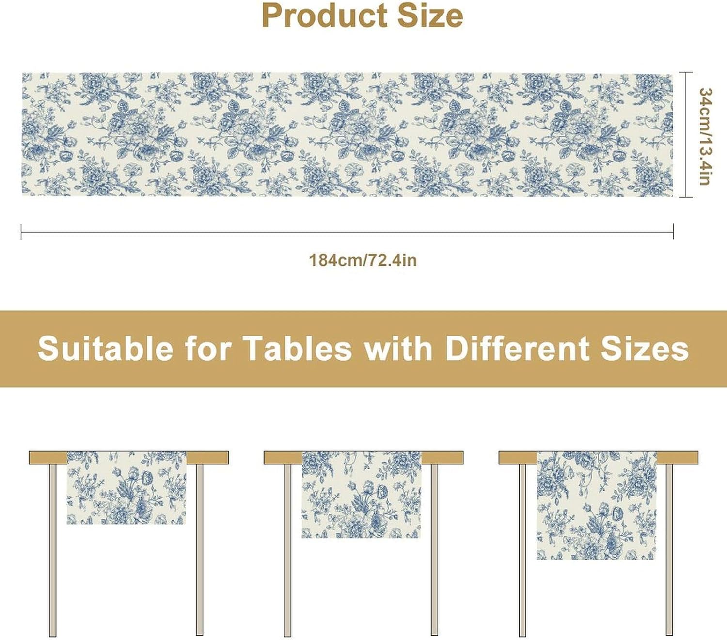 - Package:Each package 1 Table Runner, measures Length: 120 inch, Width: 13 inch.