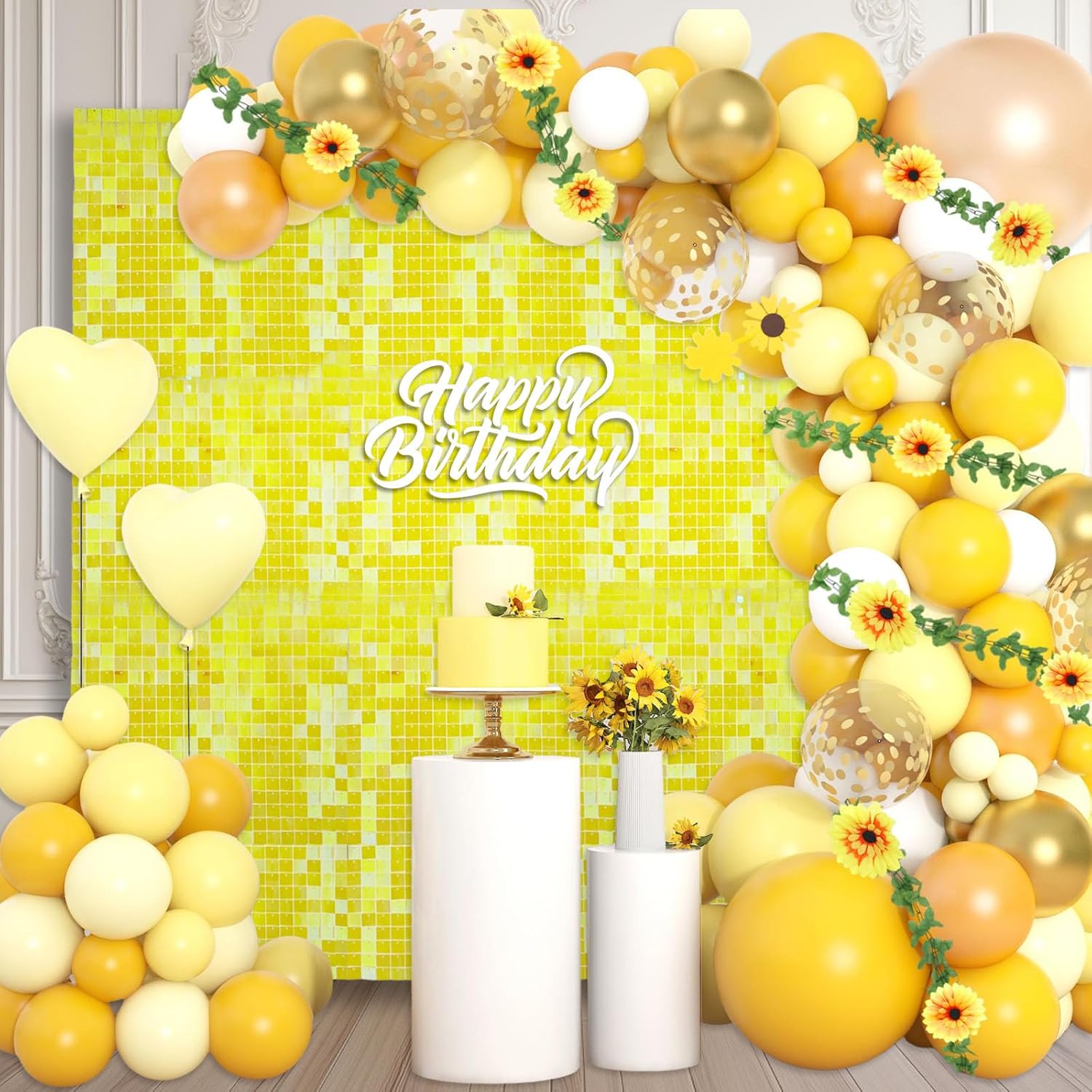 12PCS Colorful Yellow Shimmer Wall Backdrop, Square Sequin Photo Backdrops Panel, Glitter Wall Background for Birthdays, Weddings, Christmas, Engagements, Disco Bachelorette Party Decor (3FTx4FT)