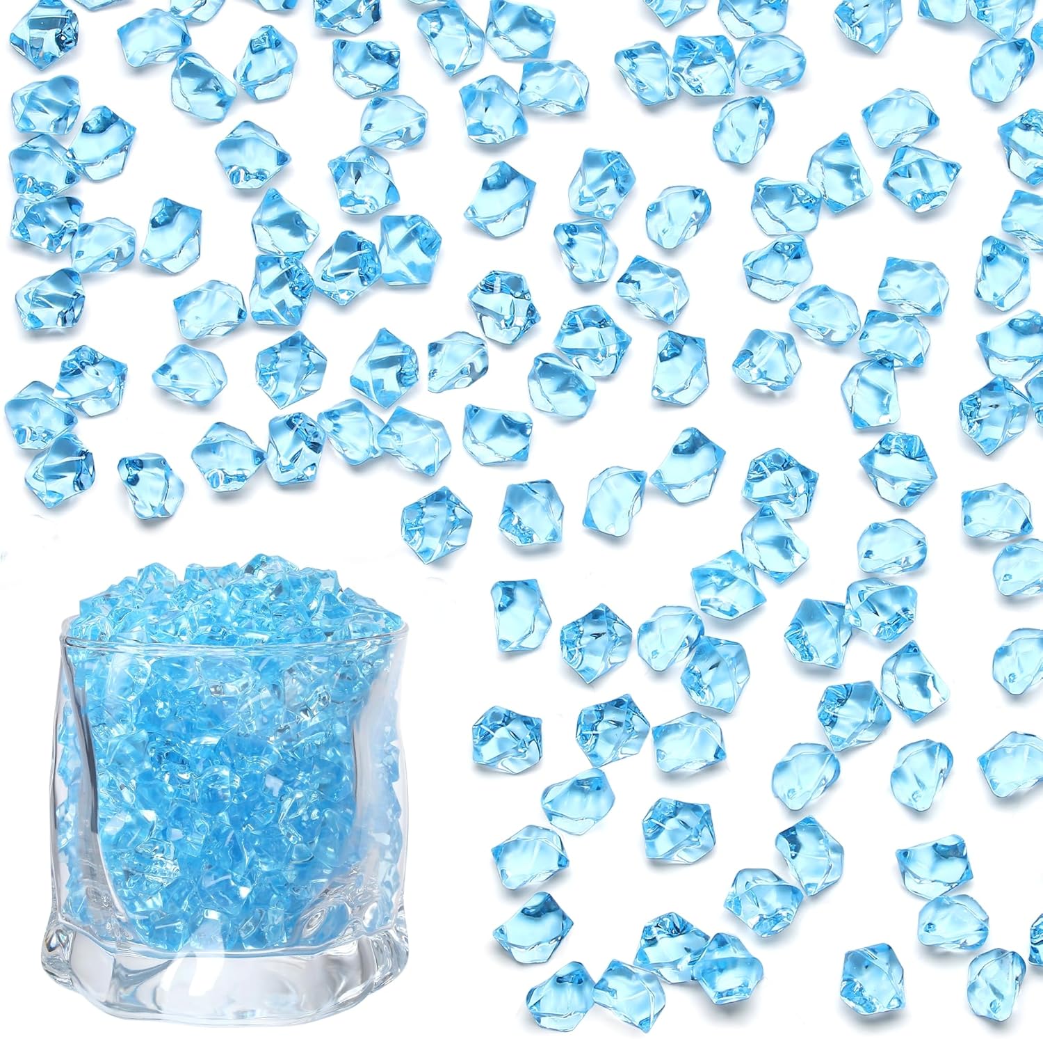 - Quality Sky Blue Gems:Crafted from acrylic, these fake ice cubes are lightweight, odorless, and polished with a sparkling finish. They sink in water, making them great for fish tank decorations, candle holders, display cabinets, and event props. The bright sky blue shade enhances any modern, rustic, or coastal décor
