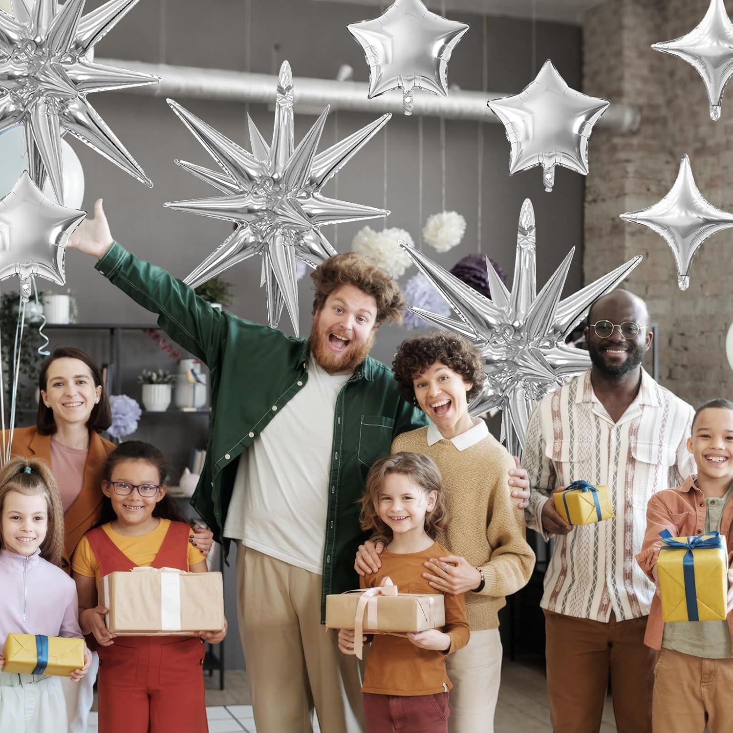 - Package: This set includes 6pcs 22inch silver explosion star foil balloons, 4pcs 10inch silver star foil balloons, 6pcs 10inch silver four angle star balloons, and a ribbon. Perfect for creating a dazzling party atmosphere.