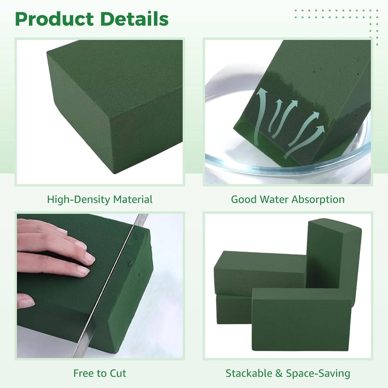 - Good Water Absorption: Designed for use as wet foam when soaked; quickly takes in water and holds it evenly; great for extending the freshness of real flowers in arrangements, centerpieces, or floral present boxes