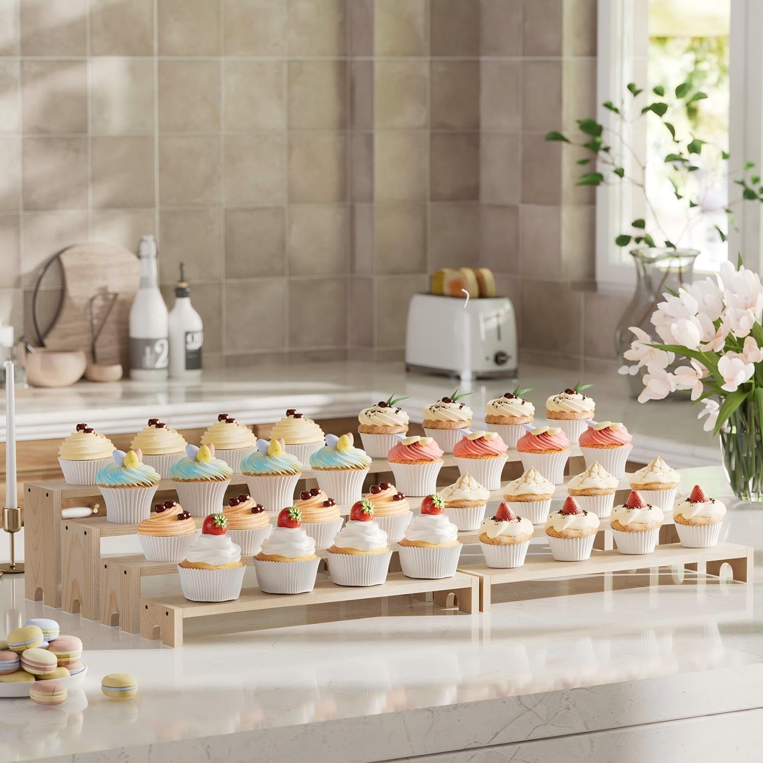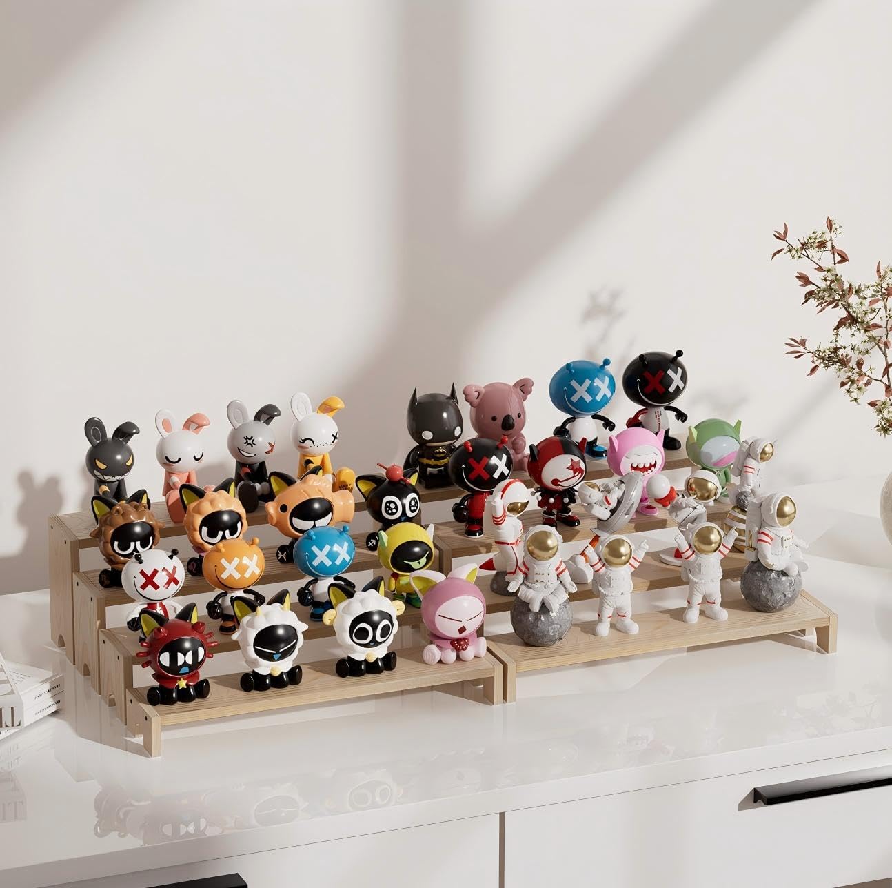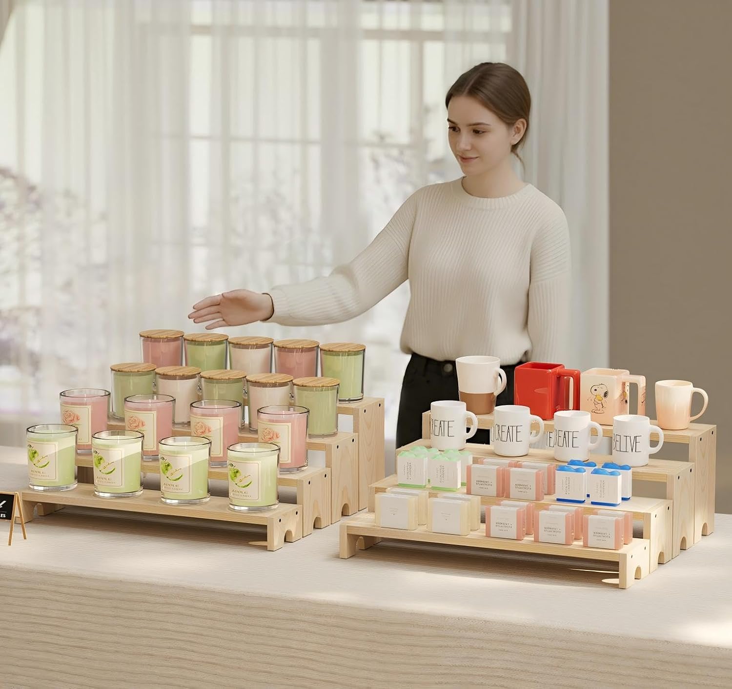 - 【All-Scenario Wooden Tiered Display Riser】Turn every nook into a styled gallery! Curate vanity perfumes, spotlight collectible figures in living rooms, stage succulent gardens in bedrooms, or organize spices/coffee gear in kitchens. Shift instantly from Tiered Spice Rack Organizer to party wooden cupcake stand, craft show display stands, or display shelf for vendors. Nestable 4-tier design adapts apartments to expo halls – becomes portable vendor booth display items for weddings/markets