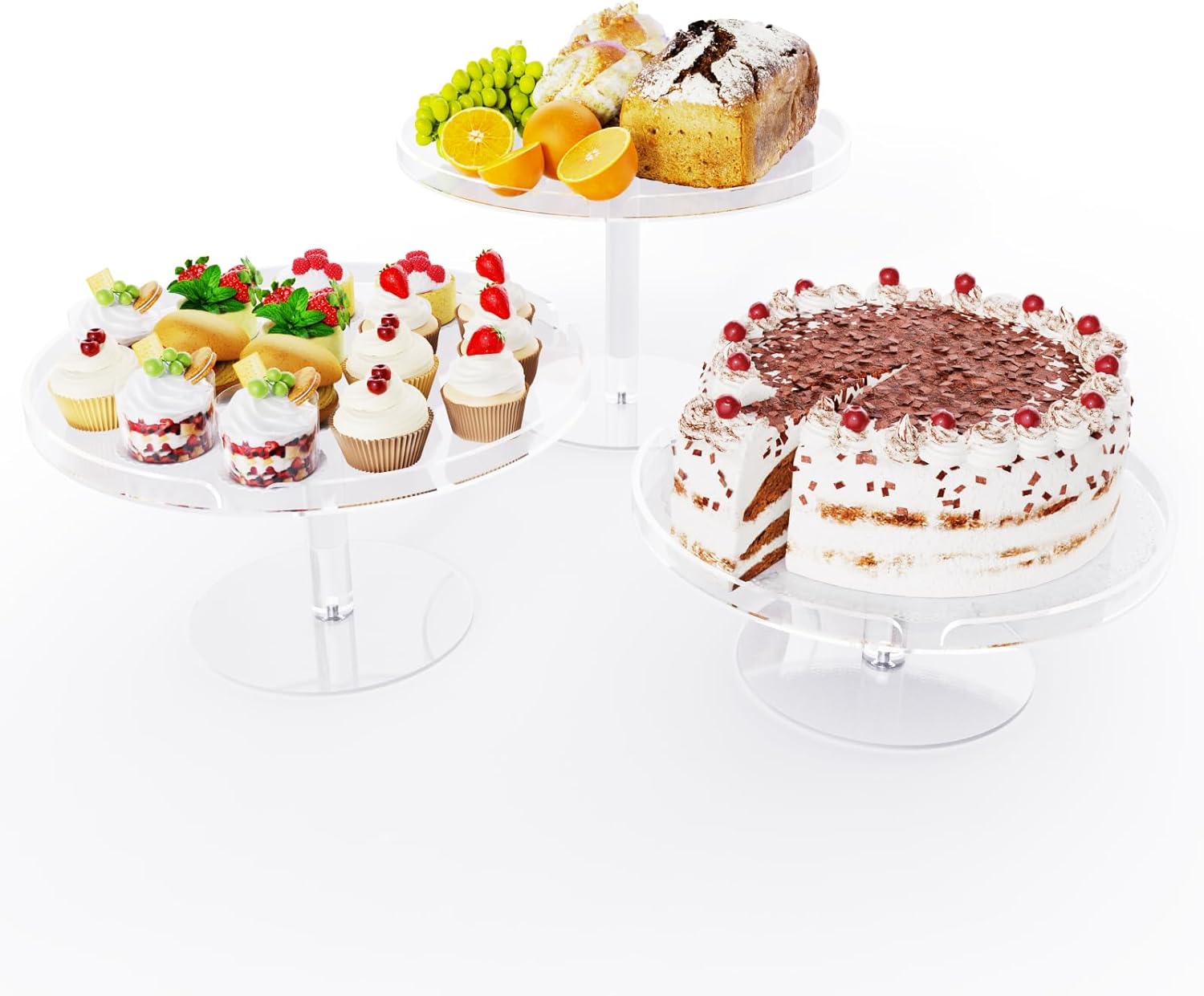 Acrylic Cupcake Stand, Clear Dessert Dessert Table Display Set, Cupcake Tower Holder Display with Base for Wedding, Party, Baby Shower, 3 Set Round, Transparent