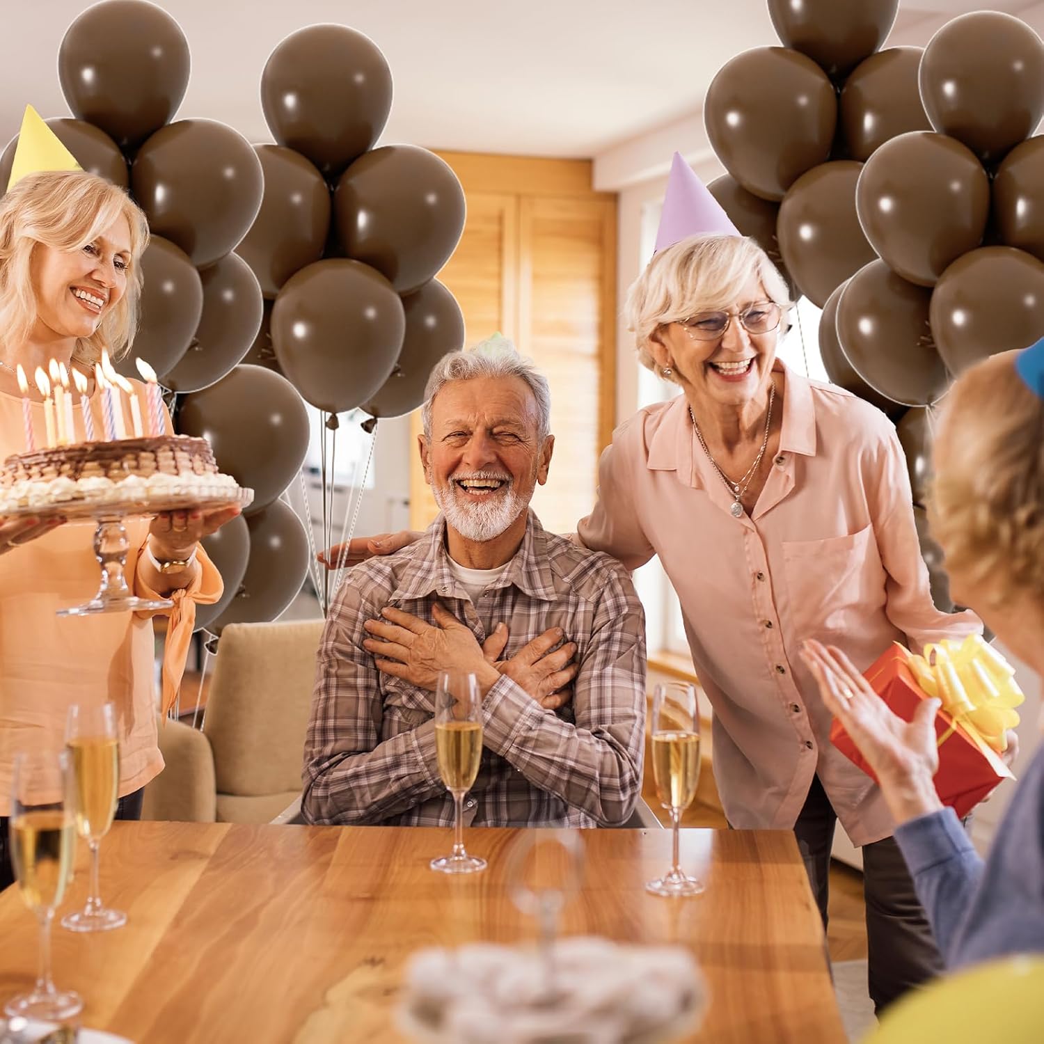 - COMPLETE DECOR KIT: 100 premium 12-inch dark brown latex balloons + 66 feet of matching ribbon. Everything needed for stunning balloon arches garlands clusters or backdrops β no extra purchases required!