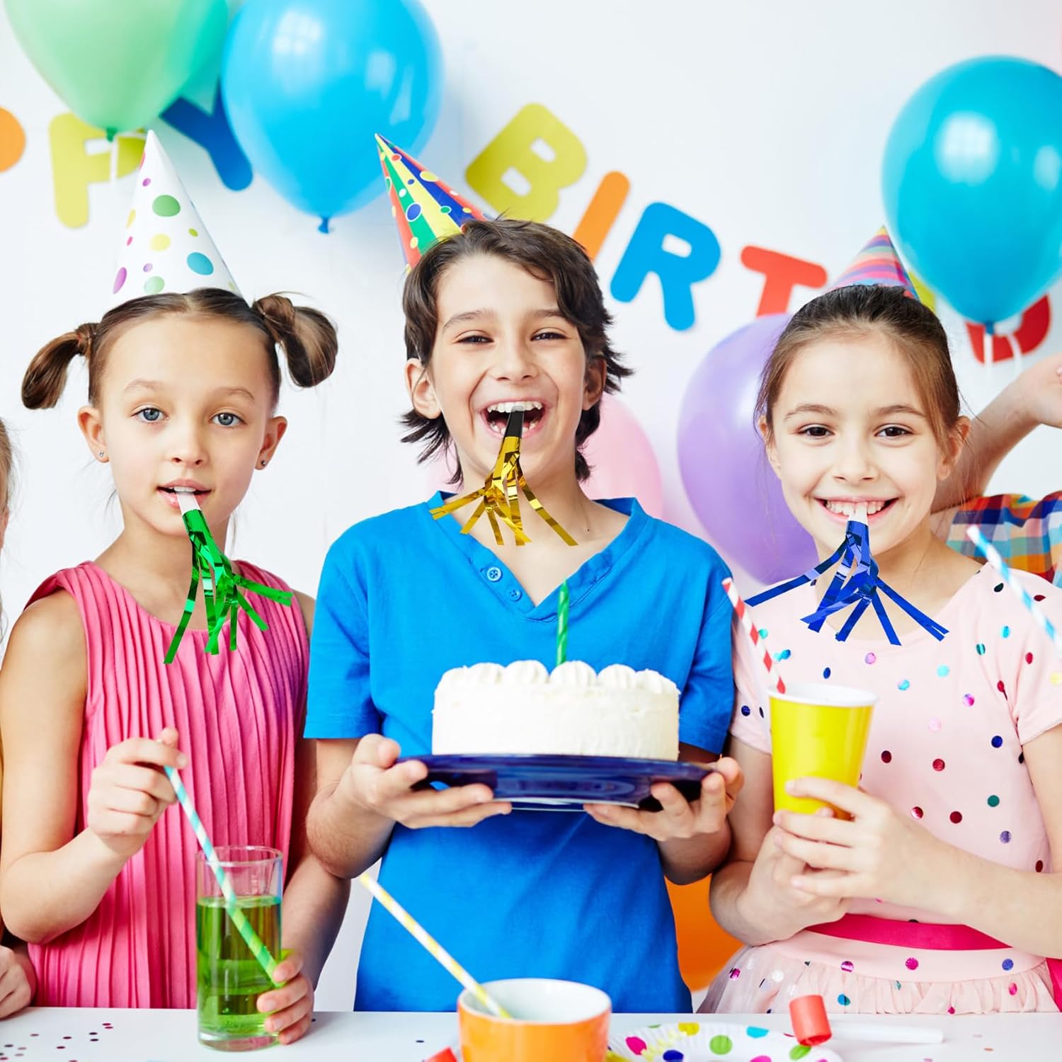 - Packaged Included: You will get 24pcs glitter metallic fringed party blowers, each new years noise makers measuring approximately 6.3 inches in total length (including tassel), this lightweight design makes those noise makers easy to carry, ensuring that party blowers for kids will be enough quantities for your birthday parties or family gatherings celebrations.