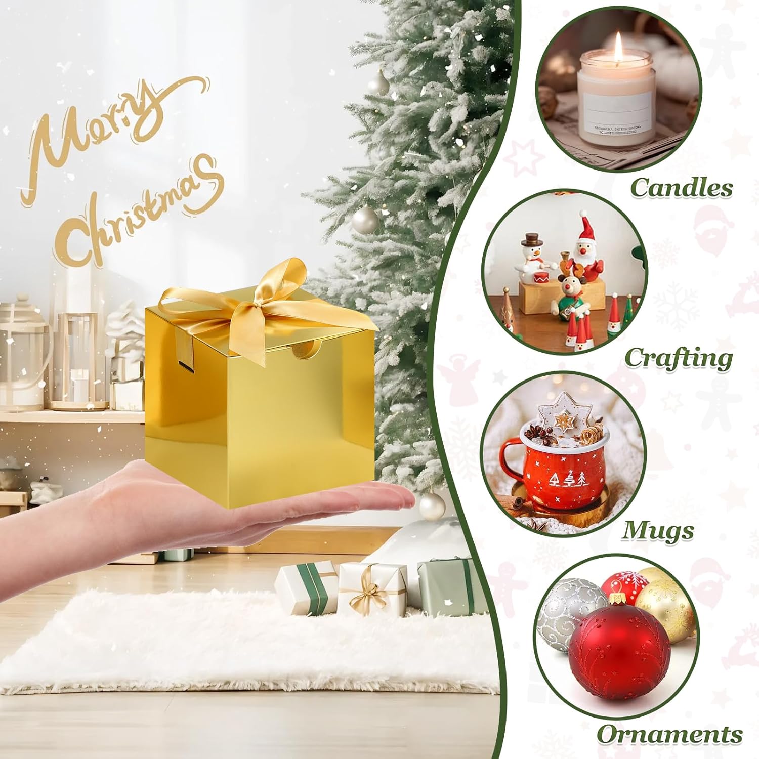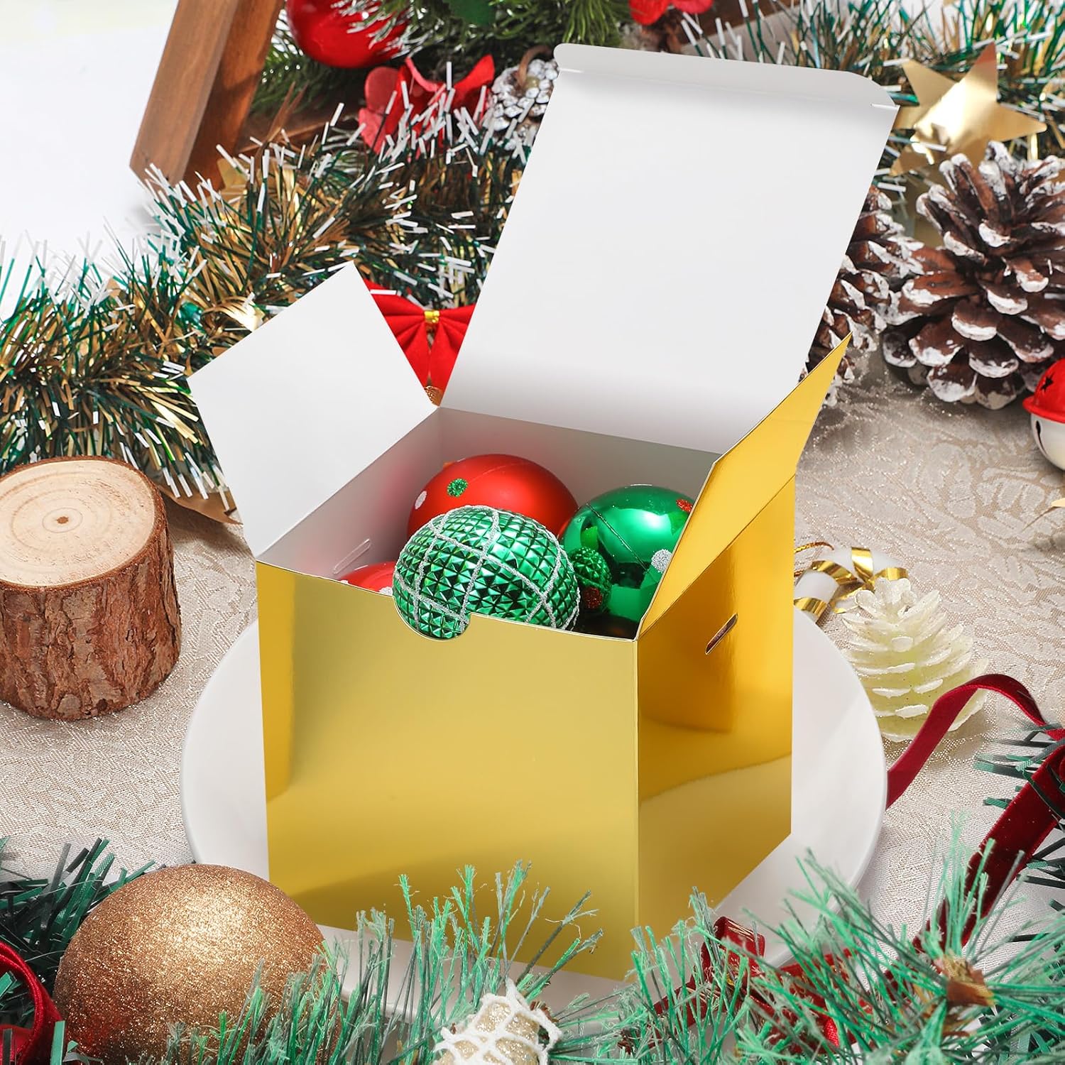 DOYIDE Small Gift Boxes, 20 Pack 5x5x5 Inch Gold Elegant Paper Boxes with Ribbons, Crafting, Christmas Gift Box Wedding Party Favor, Cupcake, Candy, Bridesmaids Proposal Box