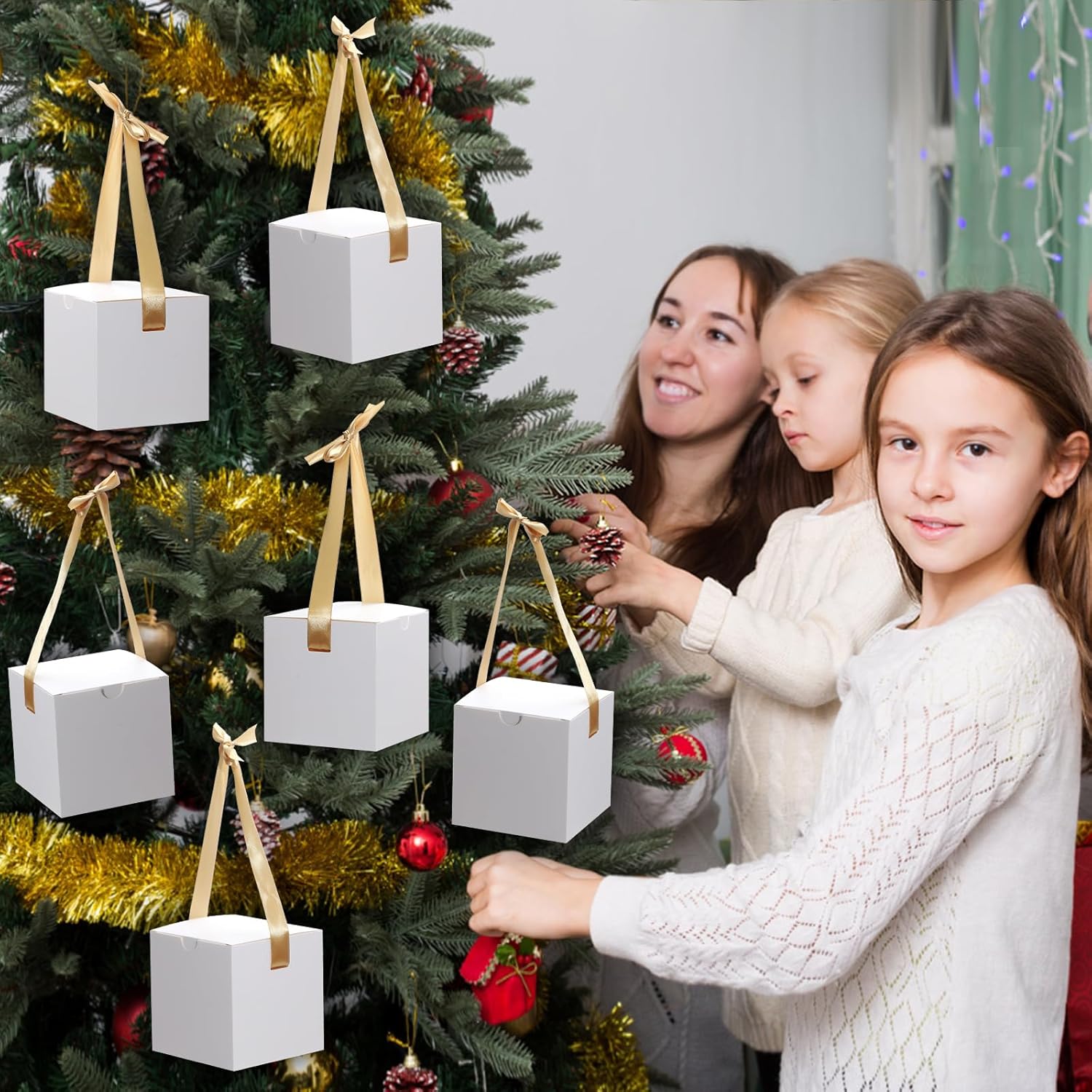 DOYIDE 20 Pack Small Gift Boxes, 6x6x6 Inch White Elegant Paper Boxes with Ribbons, Christmas Gift Box Crafting, Wedding Party Favor, Cupcake, Candy, Bridesmaids Proposal Box
