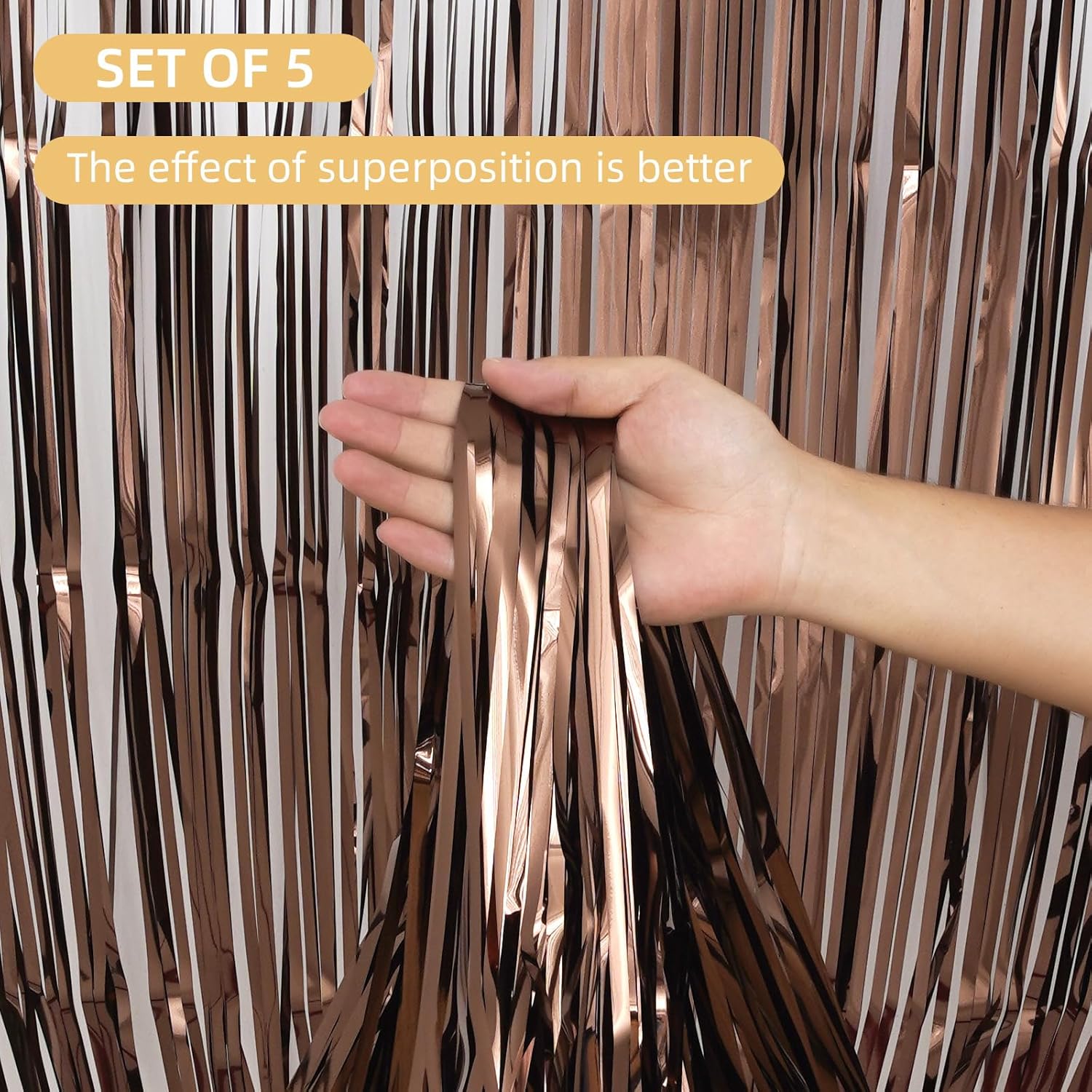 5 Pack Brown Fringe Backdrop 3.2ft x 8.2ft Silver Foil Fringe Curtains Party Tinsel Curtain Backdrop Streamers for Birthday Party Decoration Wedding Christmas Decoration (Brown)