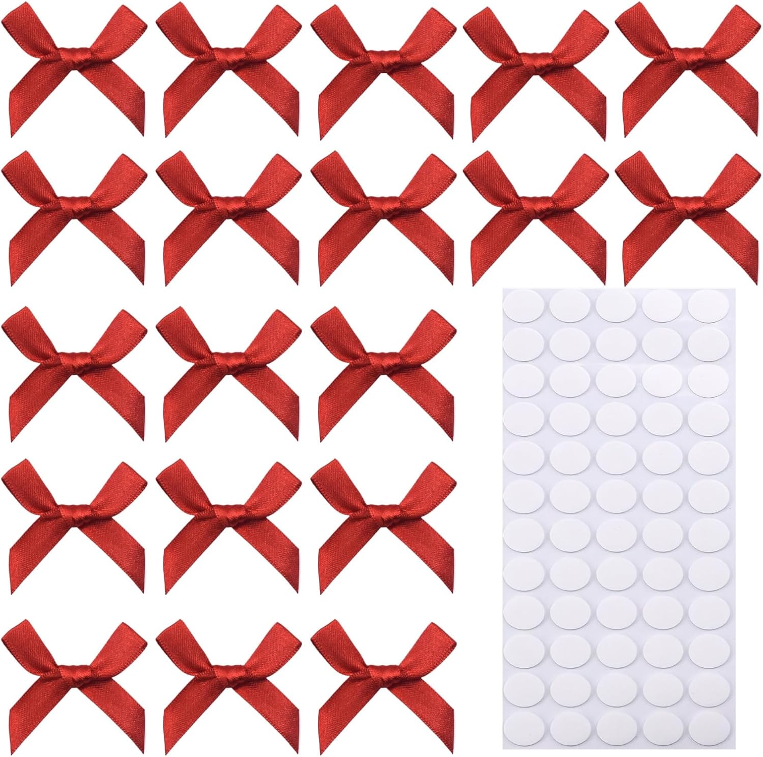 60pcs 1.7" Mini Red Ribbon Bows Decor – Small DIY Satin Bows for Crafts, Little Bows for Gift Wrapping, Tiny Bow Stickers for Note Card Bow Baby Shower Cake and Candle Decorations
