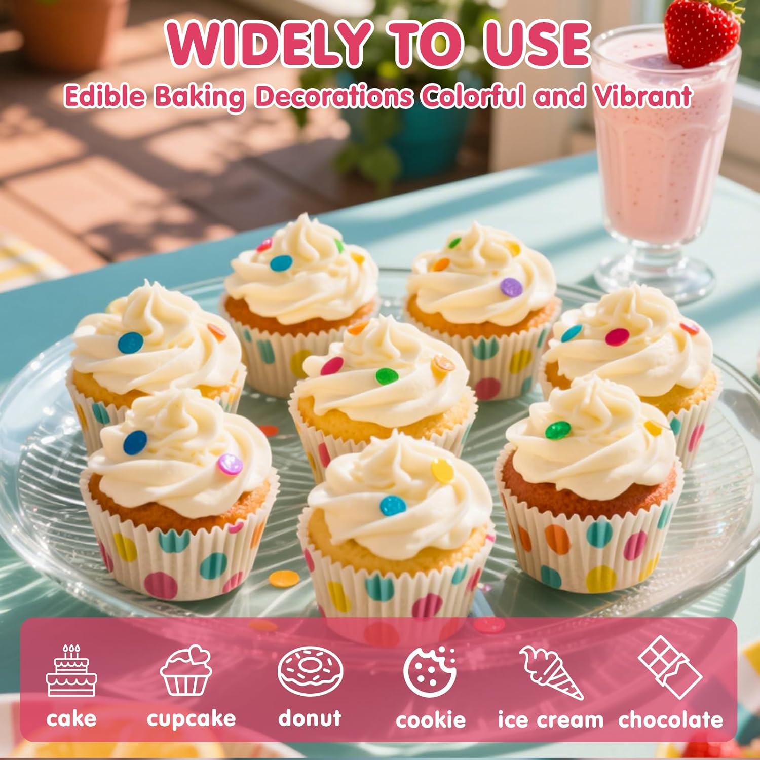 Edible Confetti Sprinkles,Colorful Round Cake Decoration for Desserts,Rainbow Circular Candy,Pastel Sprinkles for Cake Baking,Perfect For Birthday Party,Festival Baking Supplies,100g/3.53oz