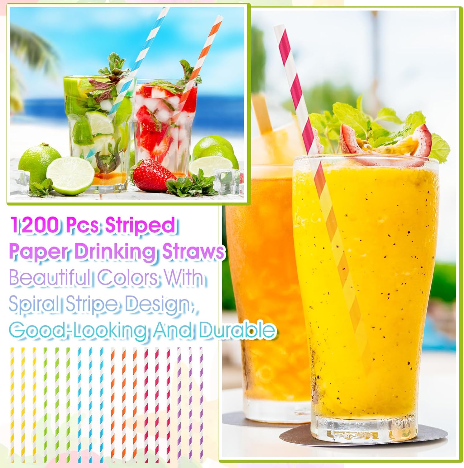 - Large Pack for Multiple Use: our striped paper straws come in a set of 1200, ensuring you always have enough on hand; This bulk package offers abundant, disposable drinking straws, making it a nice choice for events and everyday use