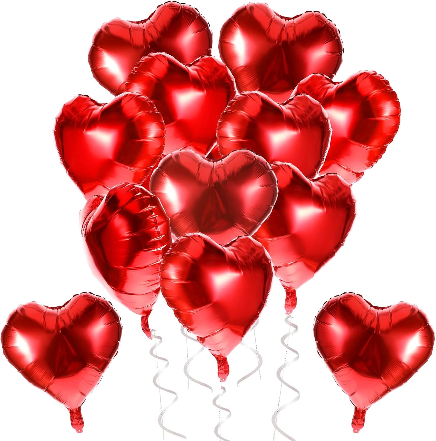 12 Pcs Heart Balloons 18 Inch Red Heart Shaped Balloons Helium Foil Balloon For Baby Shower Birthday Wedding Bridal Engagement Anniversary Valentines Day Decorations Women Girls