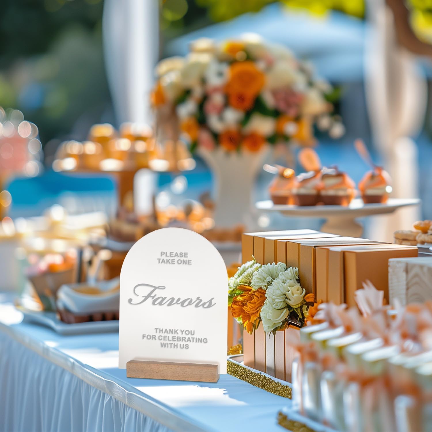 - DELICATE DESIGN - Glass-look acrylic is all the rage! Our frosted arch-shaped acrylic blanks paired with stands add a stylish and modern look to your event. The combination of the sturdy, wide wooden base and the acrylic blank ensures that any table number, card, or photo you create and display will always be upright during your event. They form the perfect foundation for creating gift table signs, picture displays, or wedding card holders.