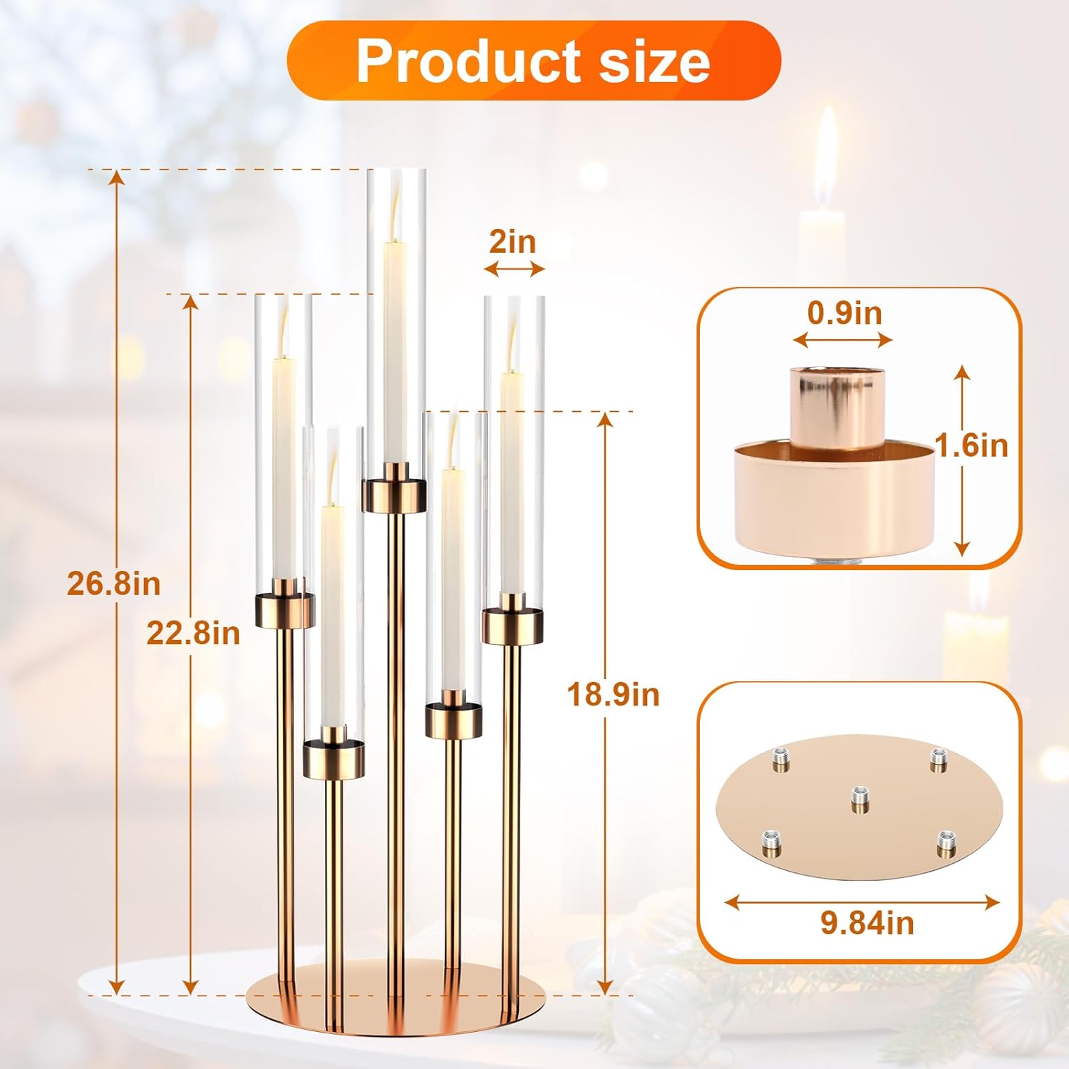 - WIDELY USED: Our 5 arms gold candle sticks holder is perfect for weddings and parties, which can add a romantic atmosphere, of course, you can also use it to decorate the living room room, which can add a warm atmosphere