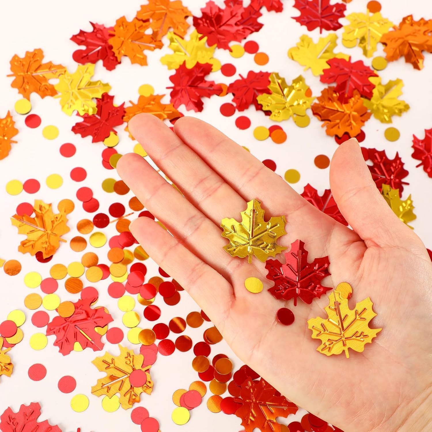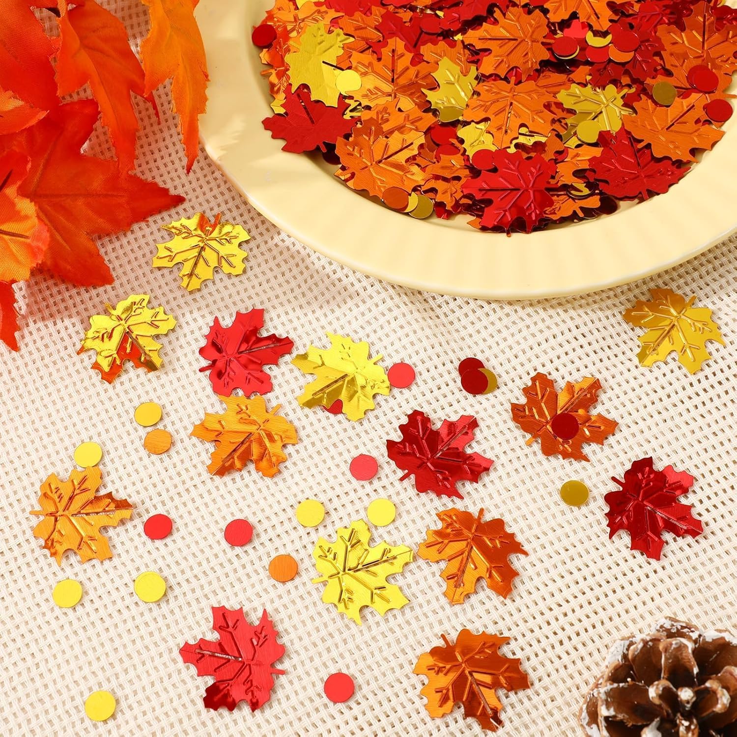 - Autumn Confetti Decorations: Fall confetti is designed in red, gold and orange colors of maple leaves, and the color matching of the harvest Thanksgiving theme is the ideal decoration for all your autumn parties.Thanksgiving confetti is very suitable for the table, and the lovely maple leaf theme design is full of festival atmosphere