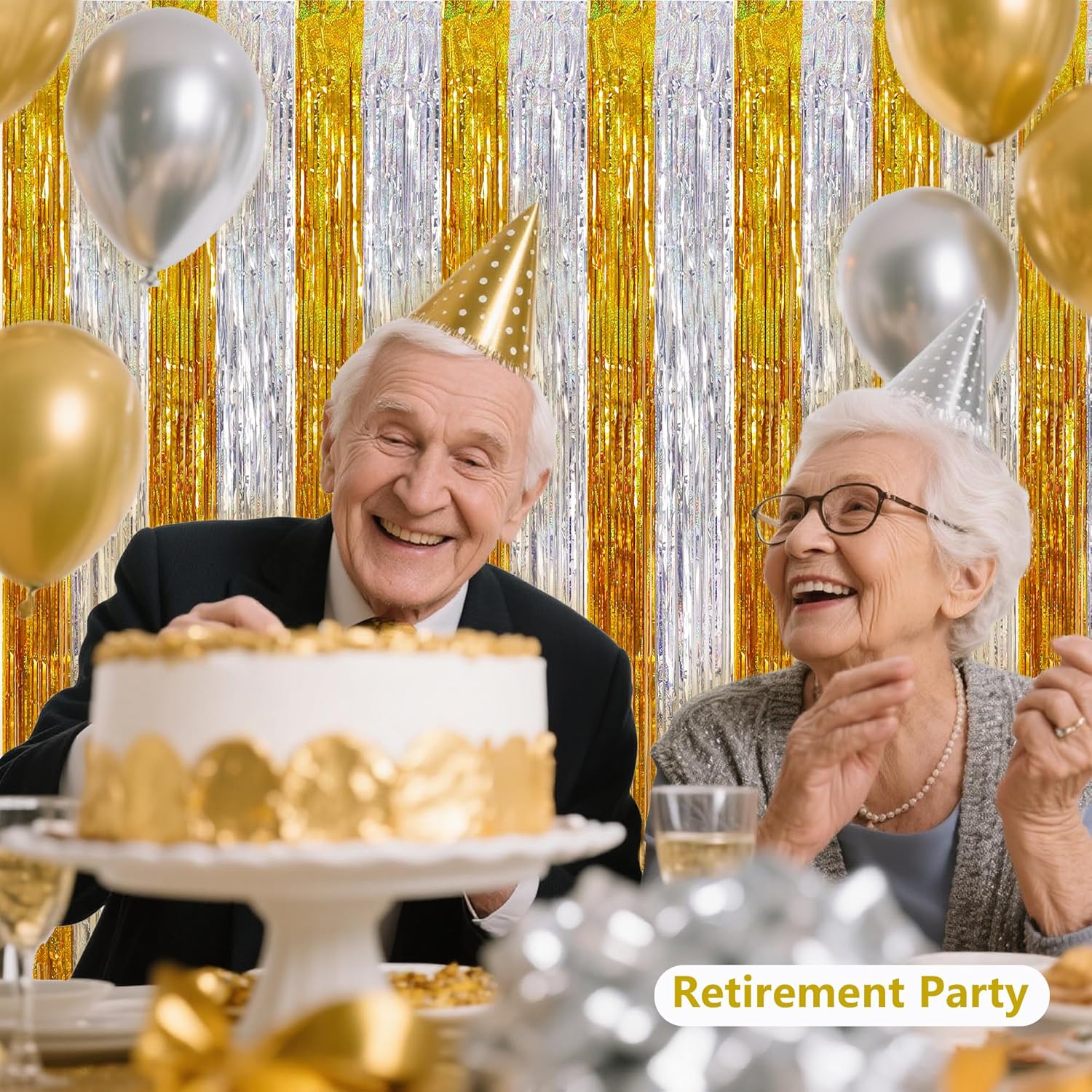 BEISHIDA Gold Silver Door Streamers Backdrop Foil Fringe Tinsel Party Streamers Curtains Photo Backdrop - 2Pcs for Birthday Graduation Bachelorette Party Decoations
