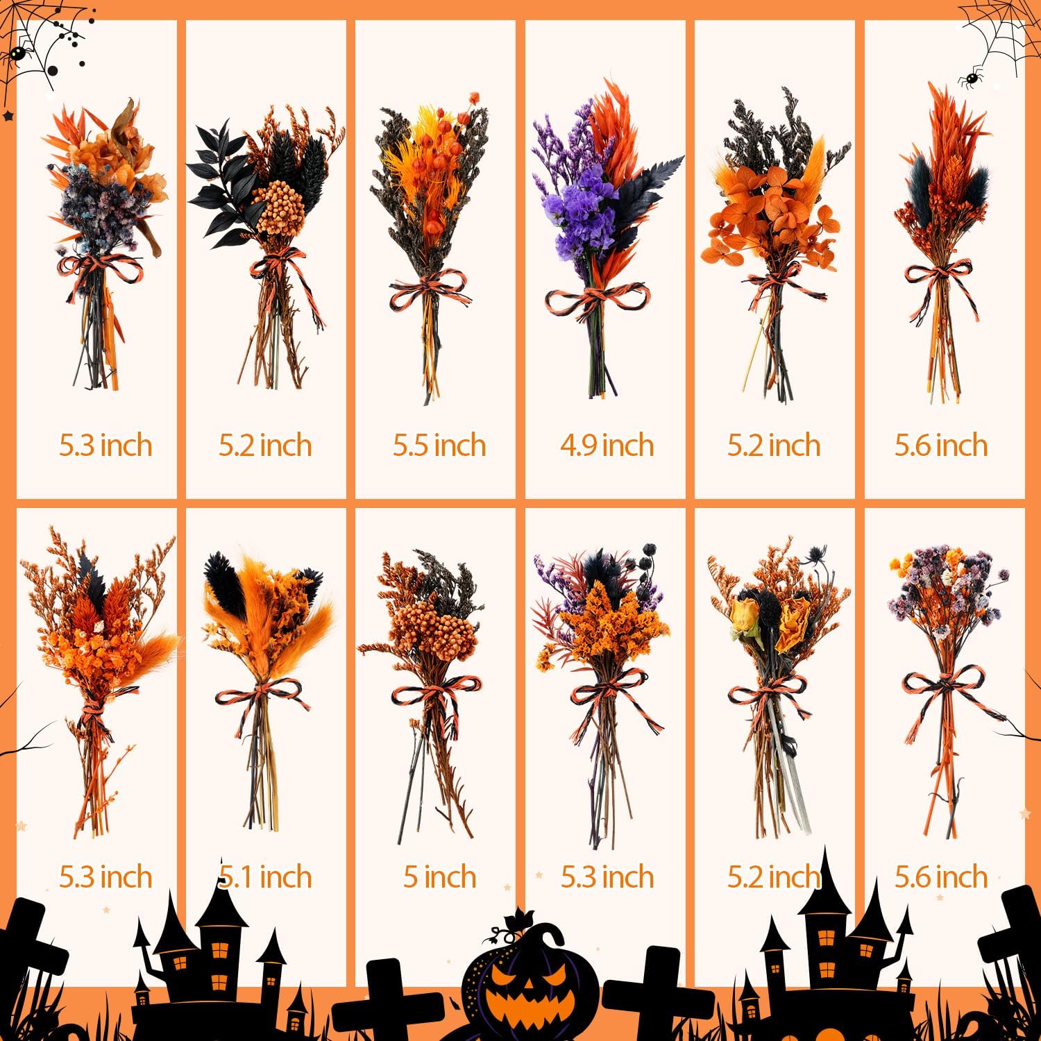 10/12/24/36 Pack Mini Dried Flowers for Vase Wedding Various Mini Bouquet Dried Small Wildflowers Natural Flowers Bulk for Crafts DIY Decor (12, Halloween Color1)