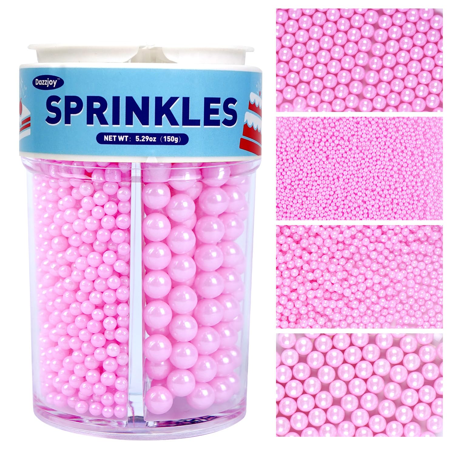 Dazzjoy Edible Pink Pearls Sugar Sprinkles, 150g/5.29oz, Pink Pearl Sprinkles for Cake Decorating, Cake Decoration & Cupcake Topper, Valentines Supplies