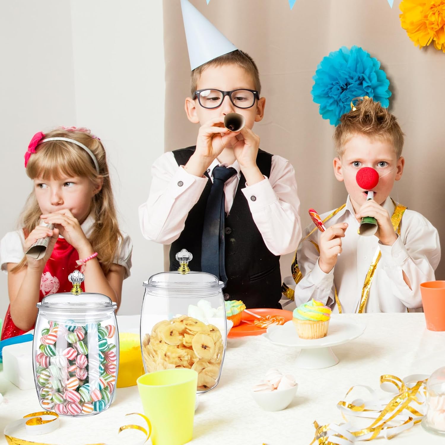- 【Versatile Applicability】:The plastic jars with lids design is widely applicable to candy buffets, home apothecary storage, or wedding decorations. The cookie jar and candy dish functions are compatible, supporting storage of various items. The plastic apothecary jars with lids construction is durable for indoor environments. Included spoons allow easy access, improving efficiency. Transparent appearance blends with any theme.