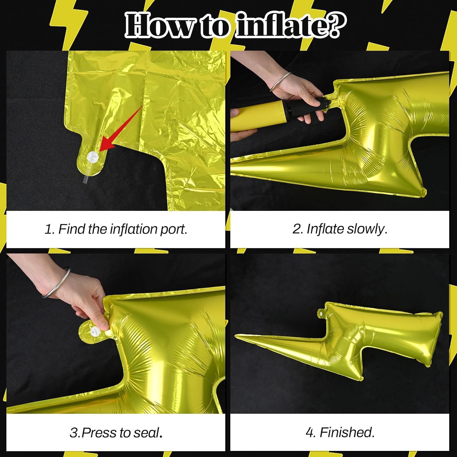 - Red Yellow Black Balloons Set: This balloons package includes 1pc 22 inch gold star foil balloon, 1 pc large lightning foil balloon, 5pcs 12 inch black lightning printed balloons, 4pcs 12 inch red gold black confetti balloons, 10pcs 12 inch red balloons, 10pcs 12 inch yellow balloons and 4pcs 12 inch black balloons. Arrives ready to use with ribbon—just inflate and decorate. Brighten up your party space with our balloons!