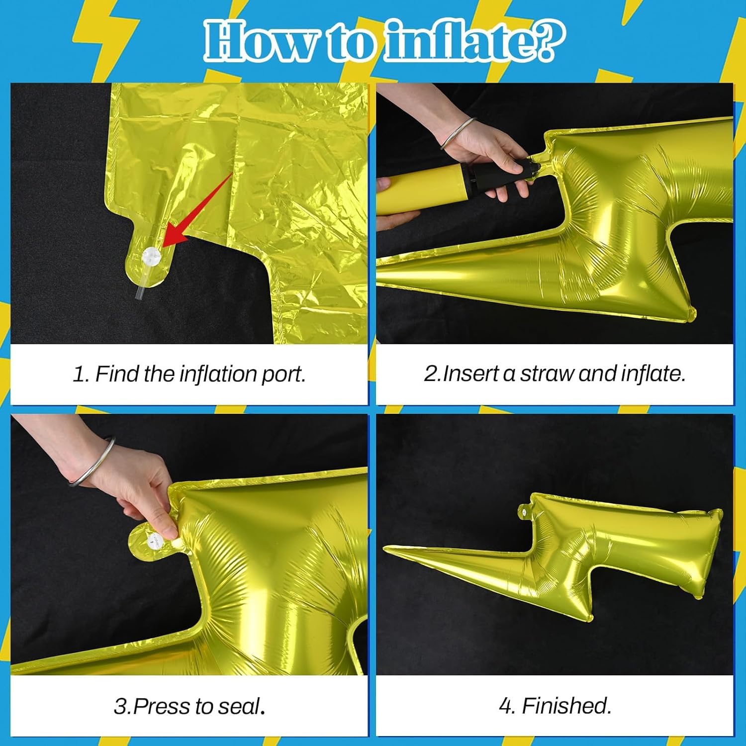 - Red Yellow Blue Balloons Set: This package includes 1pc large lightning foil balloon, 1pc 22 inch blue star foil balloon, 4pcs 12 inch red blue yellow confetti balloons, 4pcs 12 inch dark blue lightning printed balloons, 6pcs 12 inch red balloons, 6pcs 12 inch yellow balloons, 6pcs 12 inch light blue balloons, 2pcs 12 inch dark blue balloons, 4pcs 12 inch metallic gold balloons. Arrives ready to use with ribbon—just inflate and decorate.