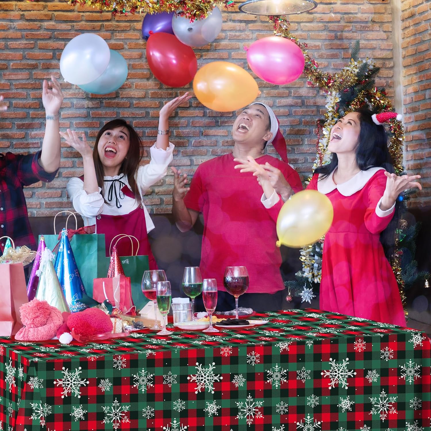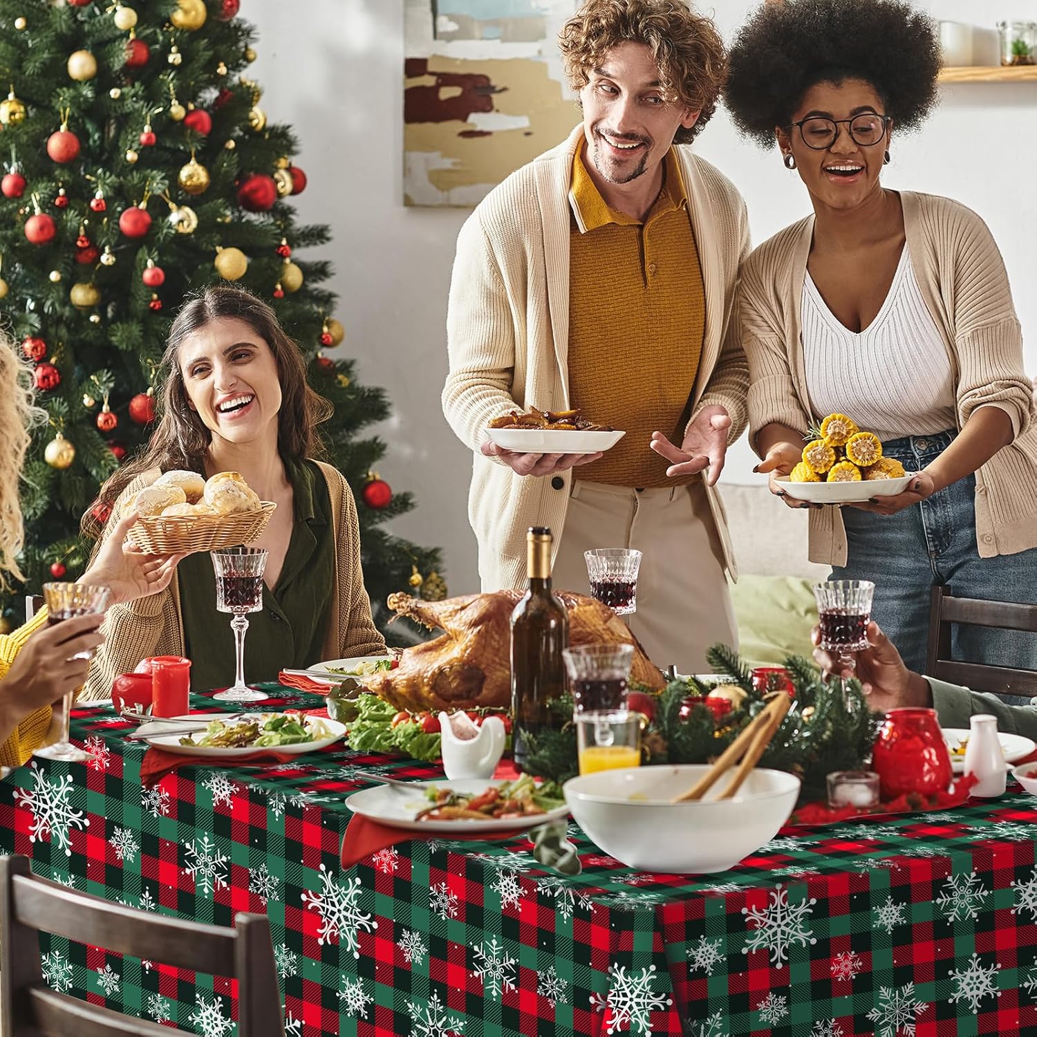 - Package include:you will get 1 roll of red and greed buffalo plaid snowflake Christmas plastic tablecloth,all over printed with white snowflake patterns on red and green buffalo plaid background,ideal for decorating your winter holiday and Christmas party supplies and decorations