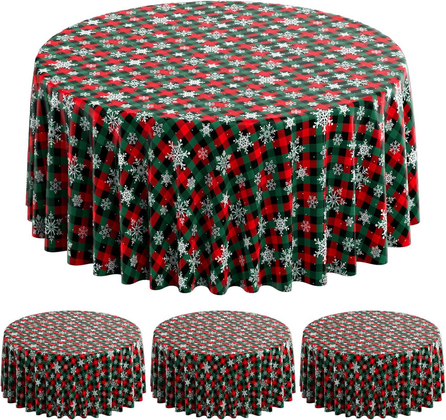 Jectivs 3Pcs Christmas Buffalo Plaid Snowflake Party Tablecloths Decorations,Plastic Red and Green Checkered Round Table Cover for Winter Christmas New Year Birthday Holiday Party Decorations,84 inch