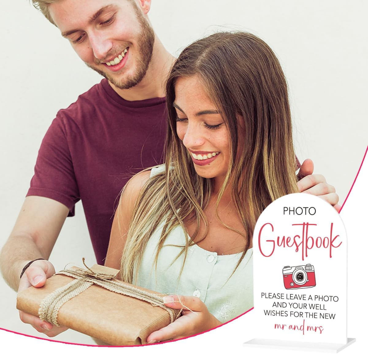 Wedding Photo Guest Book Sign Acrylic Arch Wedding Bridal Shower Baby Shower Welcome Table Signs for Ceremony and Reception Decor 7 x 5 Inches