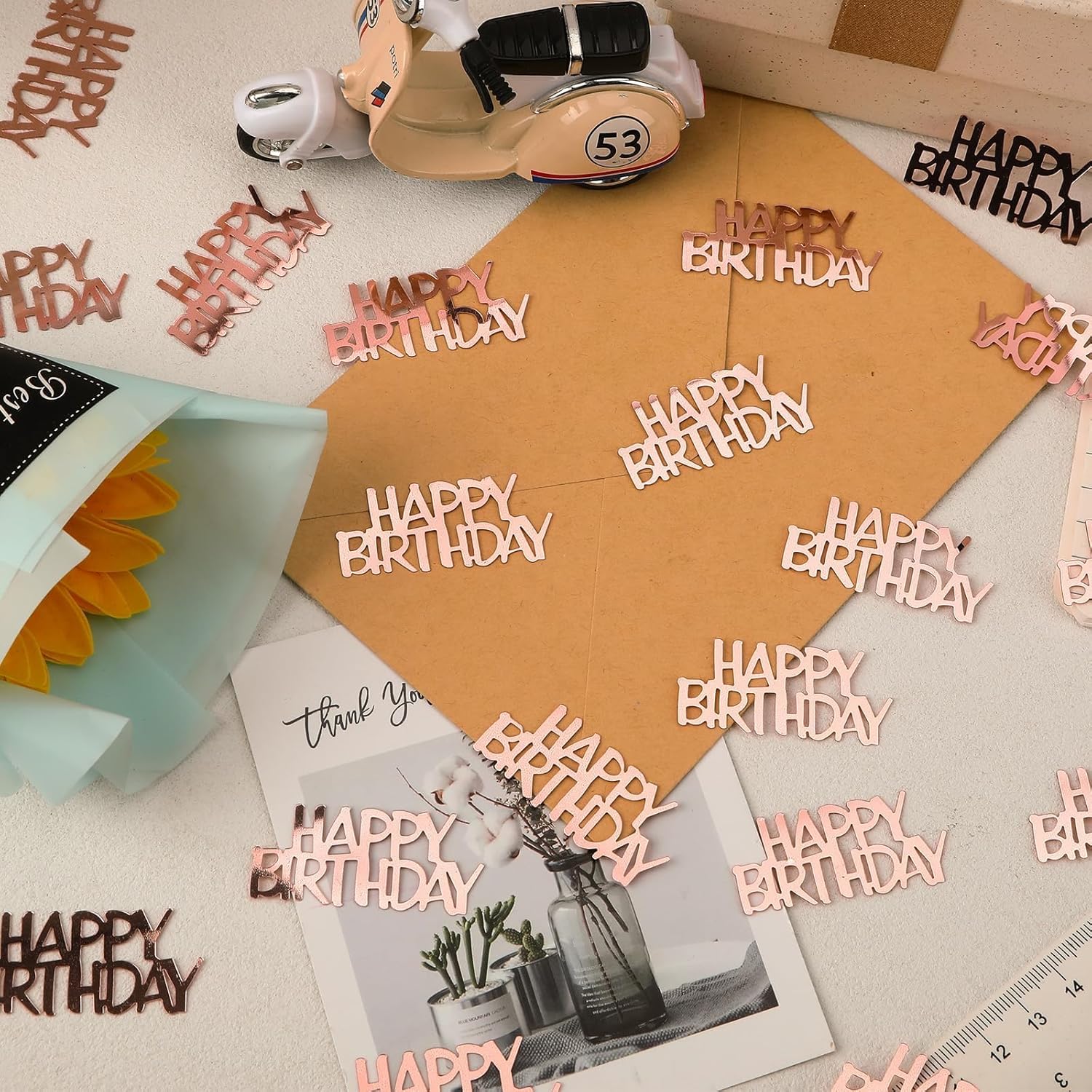 MARFOREVER Rose Gold Happy Birthday Glitter Confetti, Birthday Party Metallic Foil Table Confetti Cake Balloon Sprinkles Table Centerpiece for Adult Baby Party Decorations