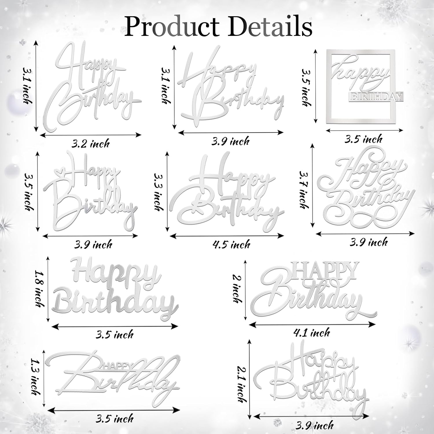 - Package Include: You'll get 10 Pcs "Happy Birthday" letter cake toppers with 10 different styles. Made from high-quality acrylic, it can be reused and is more durable than other paper toppers. It can be easily stored and reused for the next use