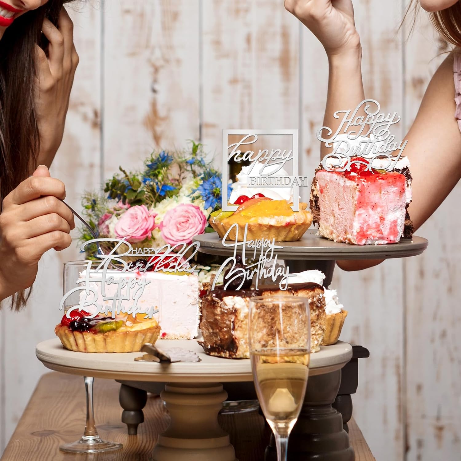 - Appropriate size: Double-sided mirror happy birthday cake topper is approx. 3.5 inch in width and the height is approx. 3 inch in height, suitable for most cakes.Tips:Our products have protective films on both sides. Please gently remove them to prevent the acrylic from breaking