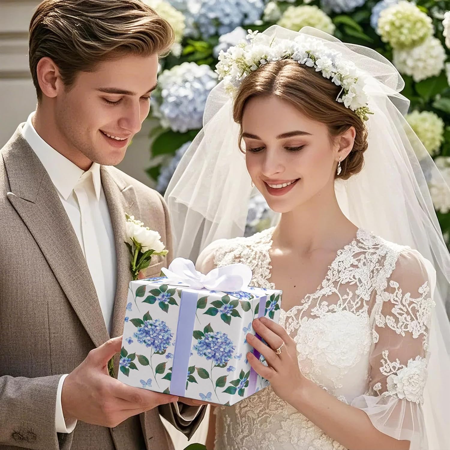 - Kraft Floral Design: Kraft blue and white hydrangea floral wrapping paper design, will make your gift exudes charm and elegance. The flower wrapping paper make it ideal for creating a wonderful gift presentation that leaves a lasting impression.