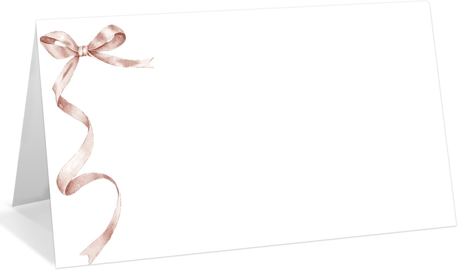 25 Pack Pink Bow Place Cards, Editable Name Cards for Table Setting, Tent Cards Food Label for Dinner Party, Bridal Shower, Wedding, Baby Shower and Events -T28