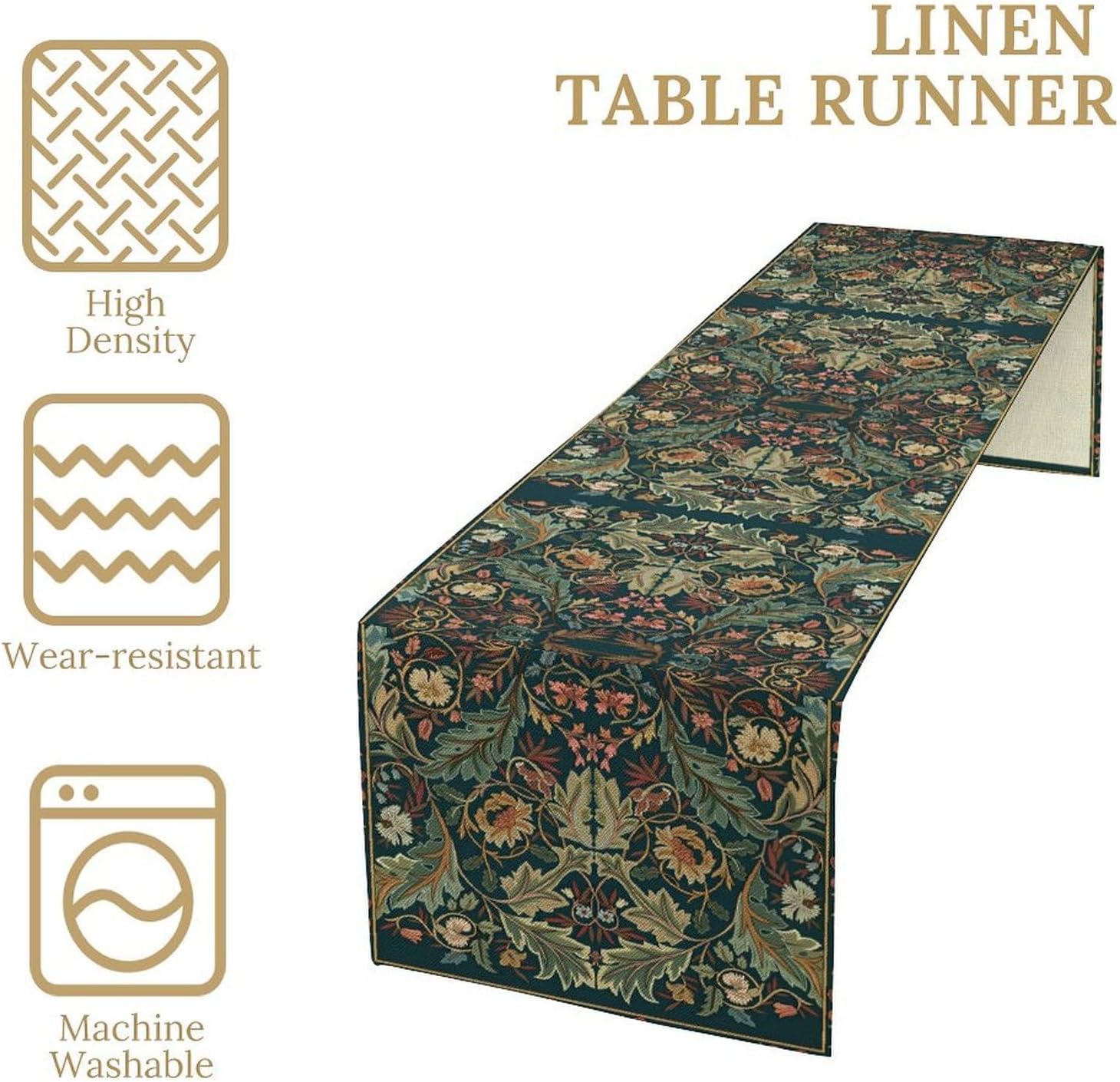 Green Morris Floral Table Runner, Boho Rustic Country Farmhouse Teal Red Rose Pattern for Home Kitchen Table Decor Dining Coffee Room Party Decor 13x108in